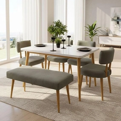 ترابيزة سفرة هوم ارت خشبية مع 4 كراسي وبانكيت - 160×80 سم بيج/أوف وايت