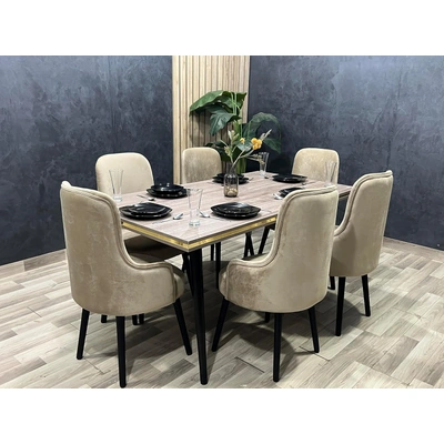 ترابيزة سفرة هوم ارت 6 مقاعد MDF مع كراسي بتنجيد قطيفة - بيج وأسود - 160 سم
