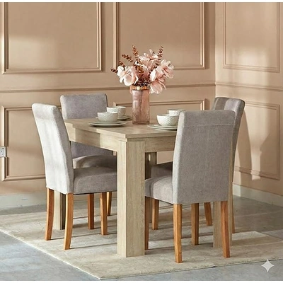 ترابيزة سفرة هوم ارت خشب MDF و4 كراسي كتان - 120*80 سم - بيج/رمادي