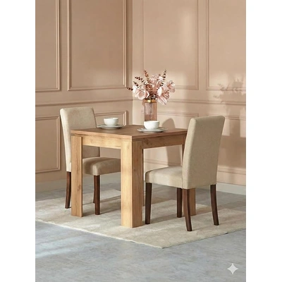 ترابيزة سفرة هوم ارت خشب MDF وكراسي كتان - 90*90*76 سم - بني/بيج