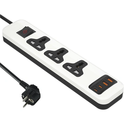 مشترك كهرباء آي لوك - 3 منافذ - مع 2 USB-C و2 USB-A 2 متر - أبيض