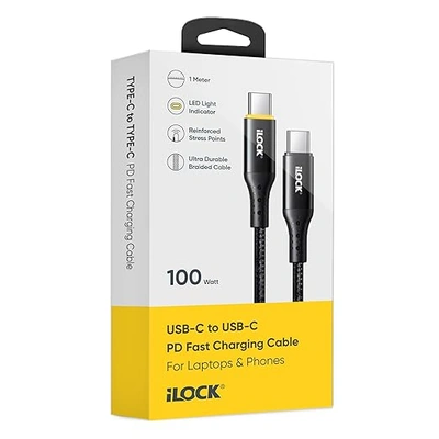 كابل شحن آي لوك - USB-C إلى USB-C 100 وات 1 متر - أسود