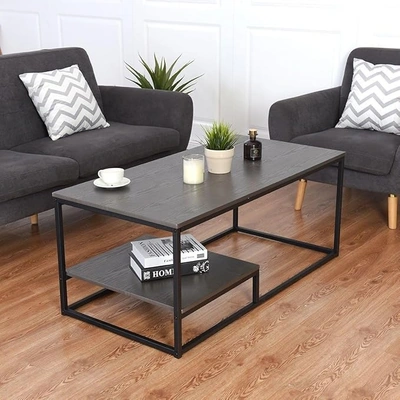 ترابيزة قهوة مستطيلة بسطح MDF وإطار معدني