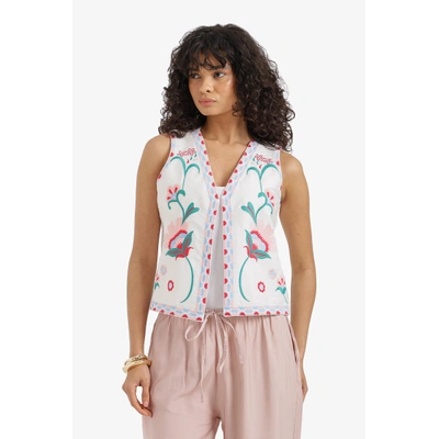 فيست بدون كم مفتوح مطرز - أبيض- 58497