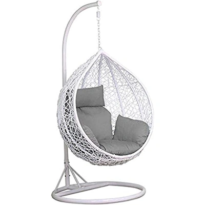 كرسي مرجيحة هزاز من الراتان - ابيض /رمادي
