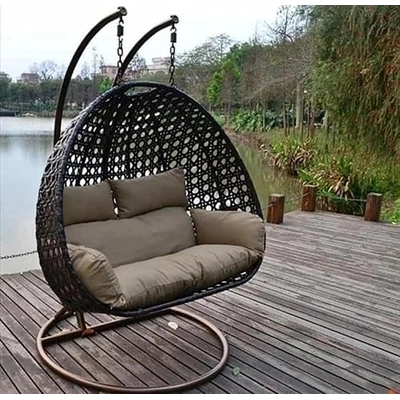 أرجوحة معلقة مع وسائد بإطار معدني من الراتان - أسود/رمادي