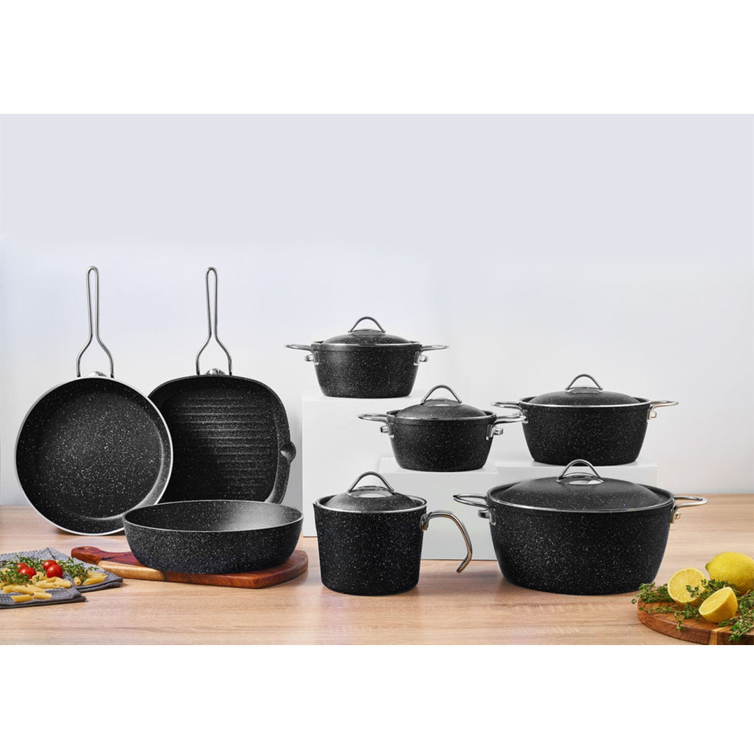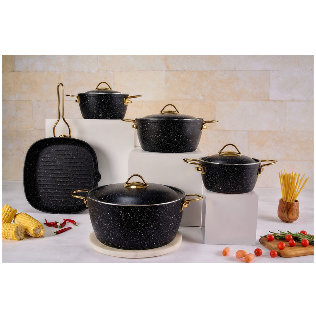 طقم حلل جرانيت حجري تركي - 10 قطع - أسود