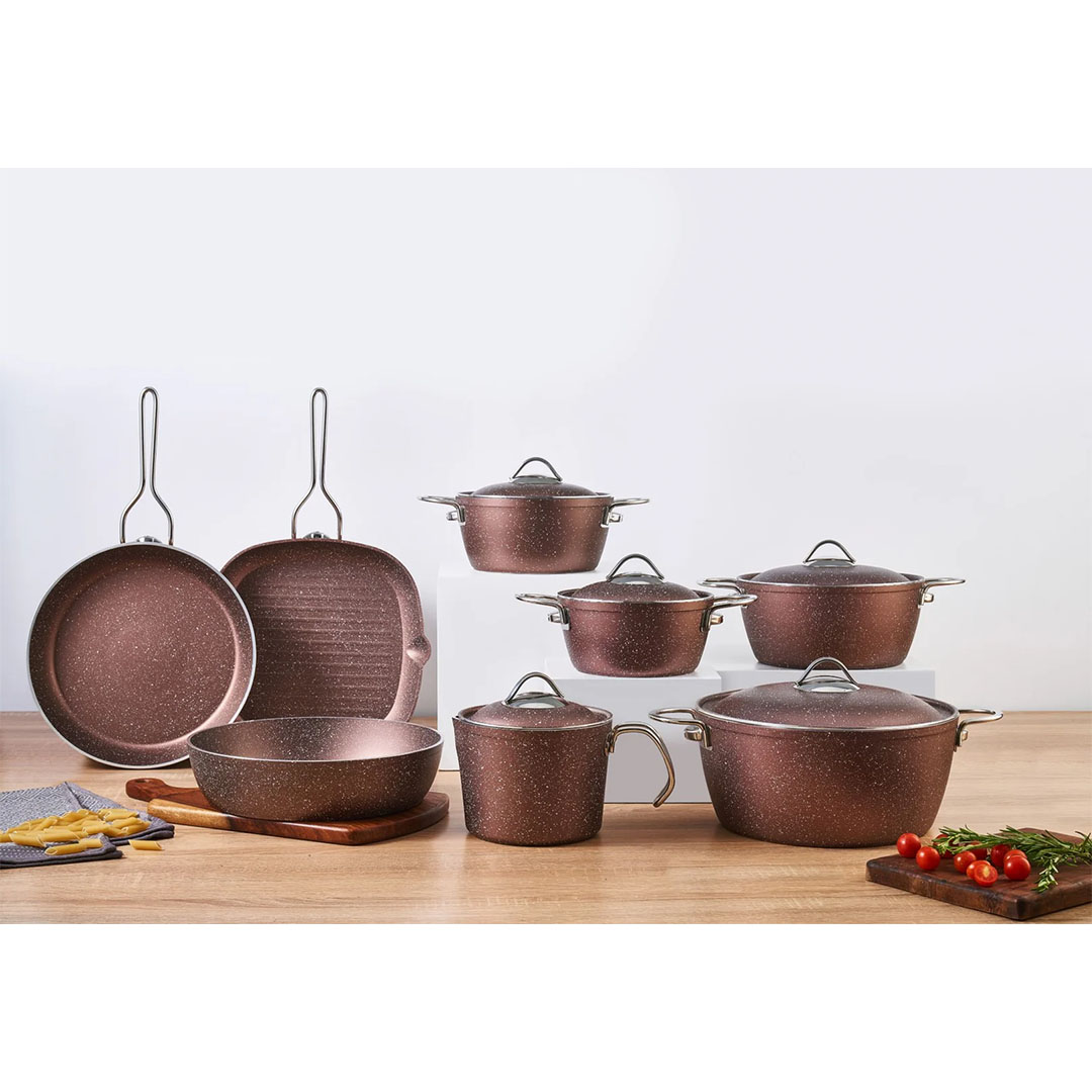 نوفال طقم حلل جرانيت فيجن - 14 قطعة - نحاسي
