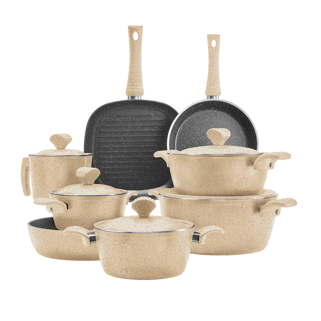 نوفال طقم حلل جرانيت فيجن روكس - 17 قطعة - بيج