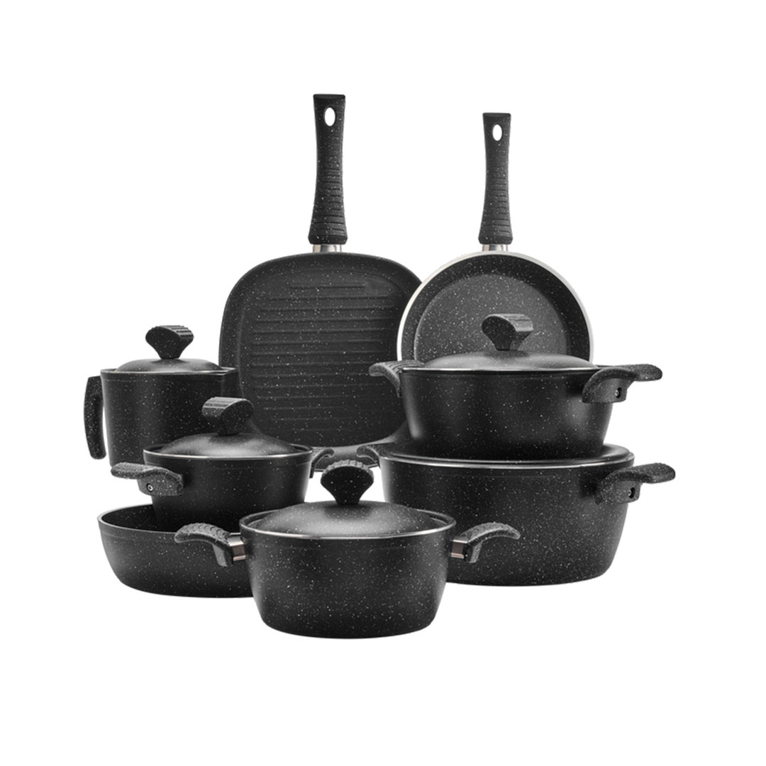 نوفال طقم حلل جرانيت فيجن - 14 قطعة - أسود