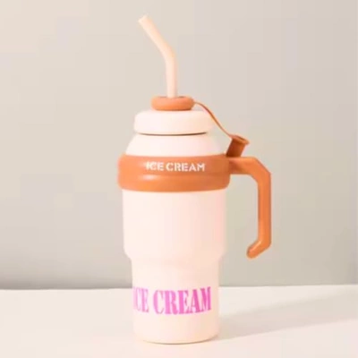 زجاجة حرارية ستانلس ستيل بغطاء وشفاطة - بيج - 1 لتر