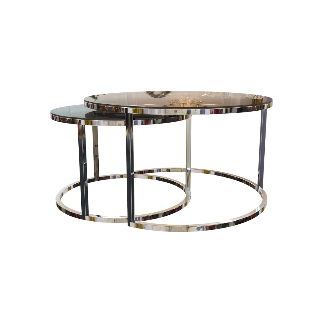 Ornamix Stainless Steel Coffee Table - Silver - Ø80 cm & Ø60 cm - MT-081