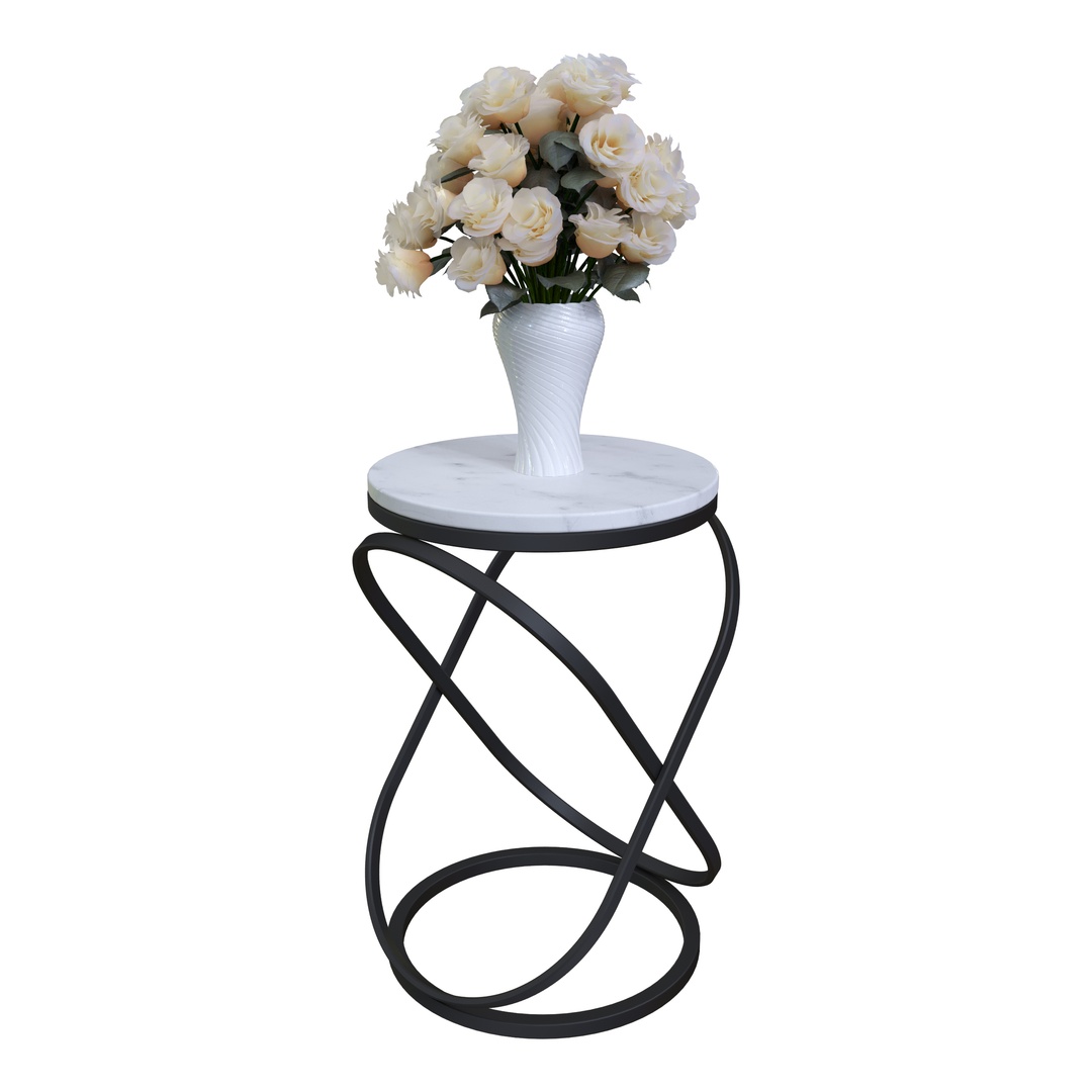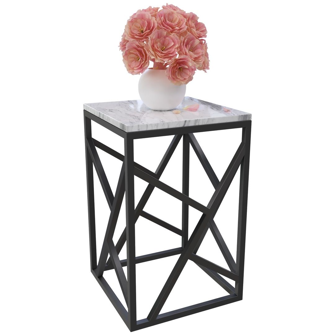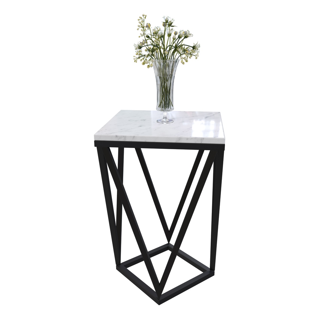 Ornamix Side Table - Black Matte Steel with White Marble Top - 60x40x40 cm - STB-2M