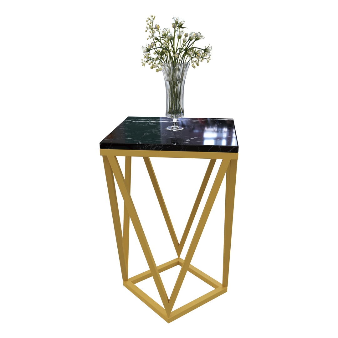 Steel side table - matte gold with black marble - 60*40*40 cm - STG-2M