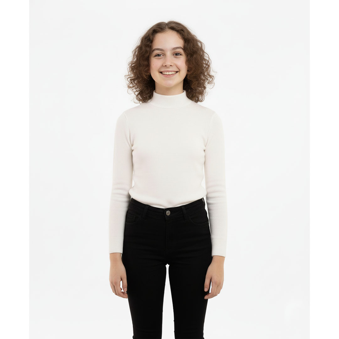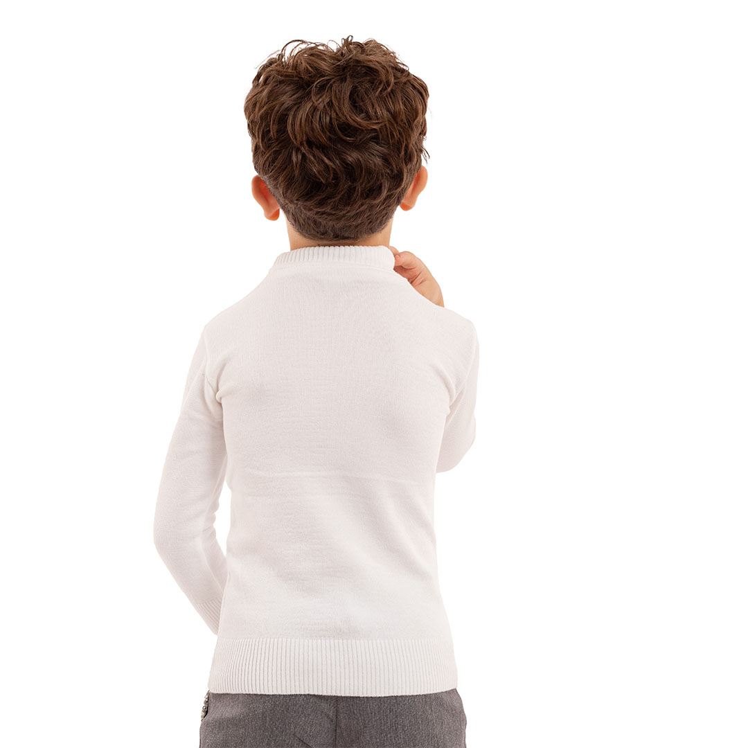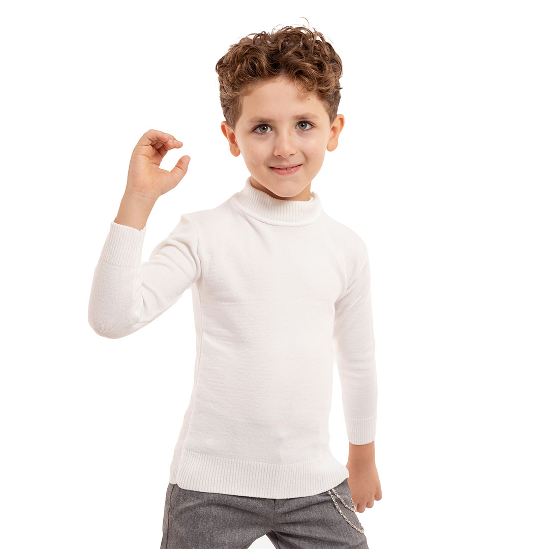 بلوفر أطفال أنيق بتصميم رقبة نصف عالية يمنح الدفء والراحة في الأيام الباردة. مصنوع من خامات ناعمة ومريحة على بشرة الطفل، مع تفاصيل بسيطة تضيف لمسة من الأناقة. مثالي للاستخدام اليومي أو للمدرسة والإطلالات الكاجوال الشتوية.
