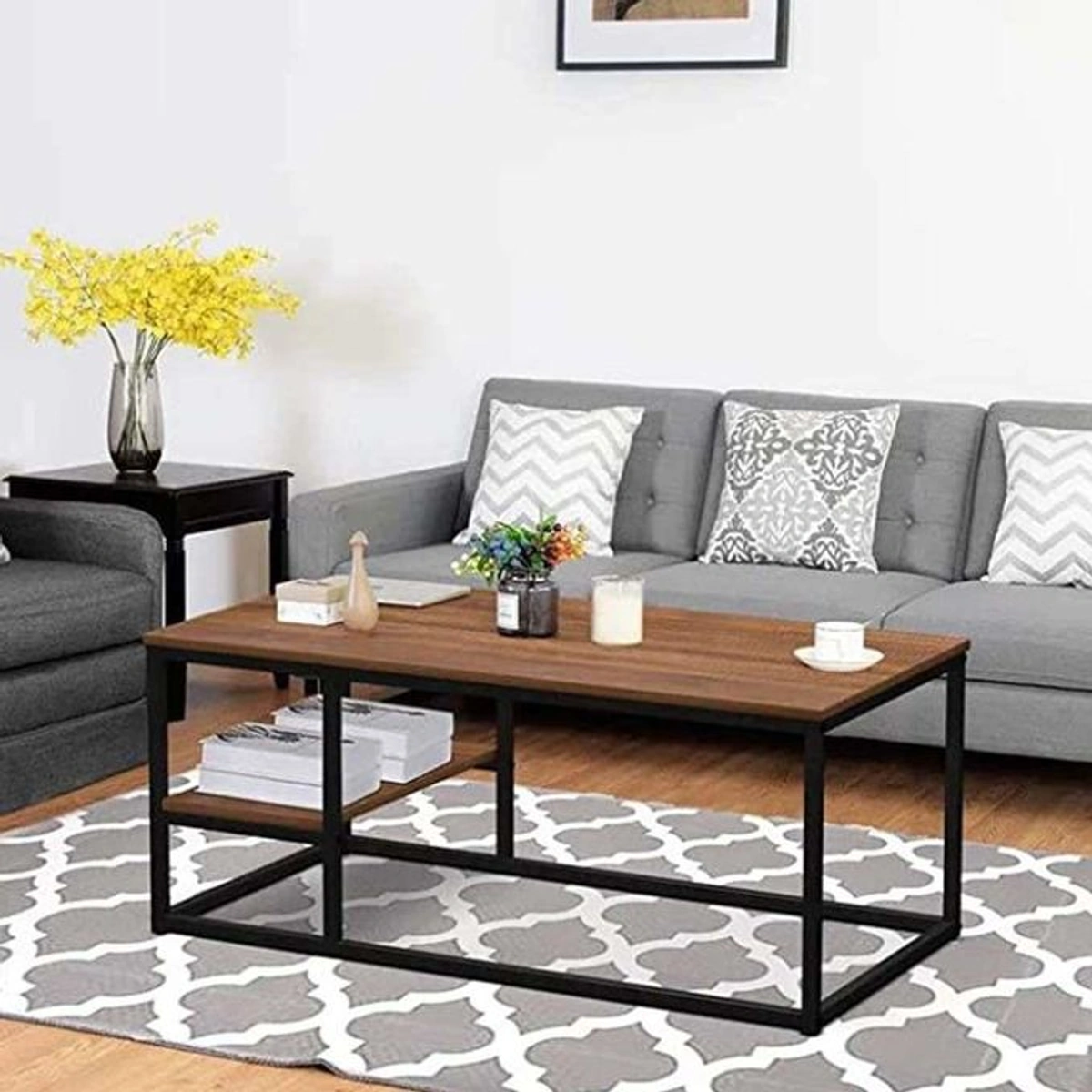 ترابيزة قهوة أنيقة تجمع بين التصميم العصري والعملية، مصنوعة من خامات عالية الجودة تشمل الإطار الفولاذي المتين والخشب الفاخر، مما يضمن لك استخداماً طويلاً ومظهراً رائعاً في أي غرفة. تأتي هذه الترابيزة بلونين متناسقين، الأسود والبني، لتناسب جميع أنماط الديكور. بأبعاد 102 × 52 × 42 سم، تعتبر مثالية للاستخدام اليومي سواء في الجلسات العائلية أو استضافة الأصدقاء. تم تصنيعها بفخر في مصر، مما يضفي لمسة محلية مميزة على منتجك.