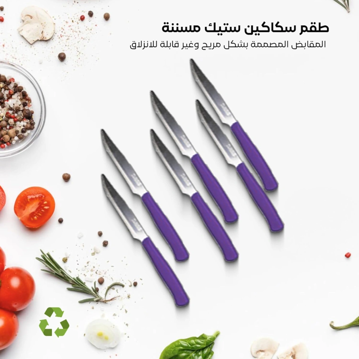 طقم سكاكين ستيك عملية للتقطيع اليومي وتناسب الاستخدام في المطبخ أو السفرة. مريحة وعملية في الاستخدام.
