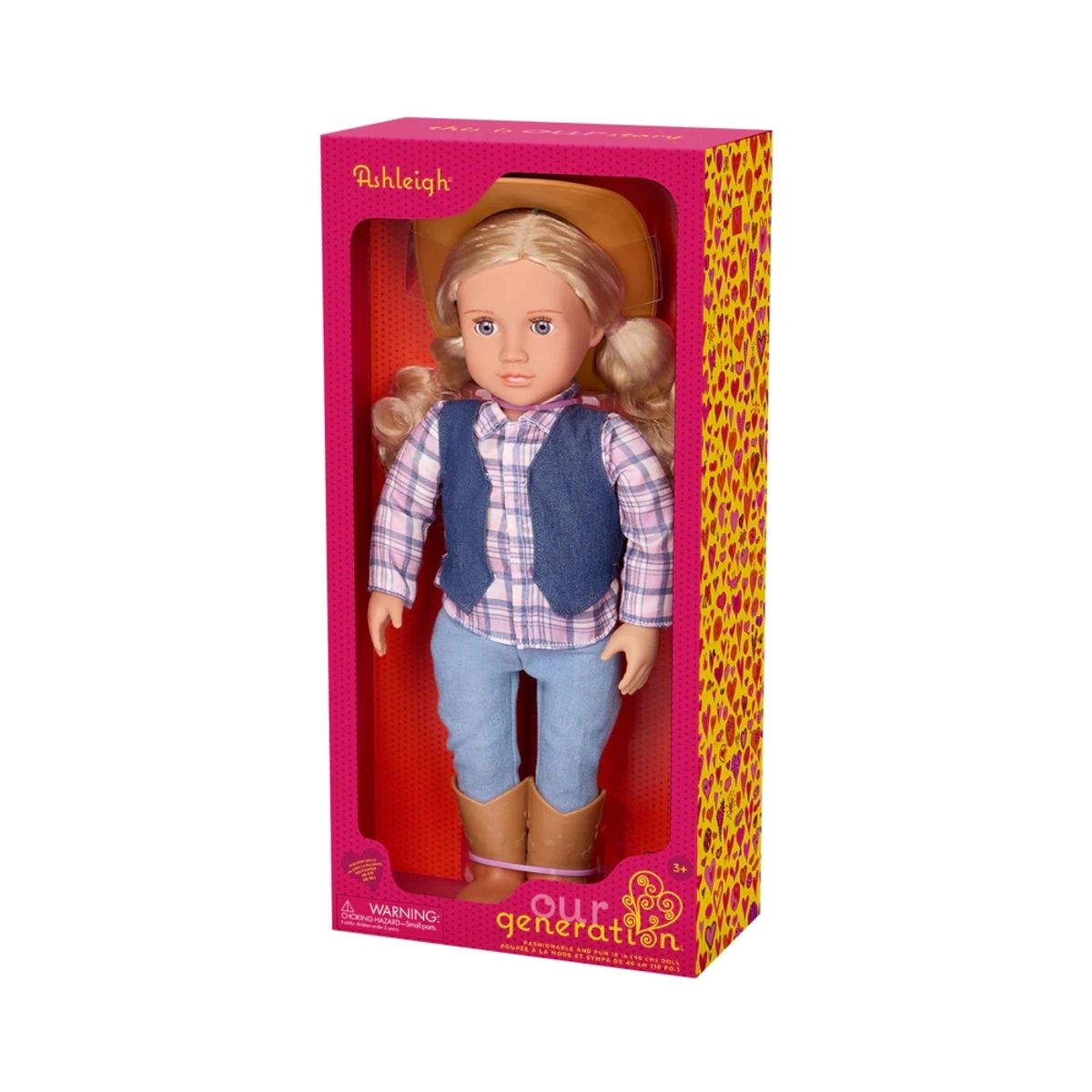 اكتشفوا جمال ومرح لعبة دمية راعية البقر آشلي من ماركة Our Generation، التي تأتي بمقاس 46 سم، مما يجعلها رفيقتكم المثالية للمغامرات. تتميز هذه الدمية المذهلة بمظهرها المستوحى من الغرب الأمريكي، حيث ترتدي جينز عصري مع بلوزة منقوشة، مما يضفي عليها لمسة من الأناقة. لا تكتمل إطلالتها بدون قبعة رعاة البقر ذات الحواف المنحنية وحذاء الركوب الطويل، مما يجعلها جاهزة لخوض مغامرات على ظهور الخيل. مع ملامح نابضة بالحياة، مثل العيون الرمادية الجميلة التي تفتح وتغلق، وشعرها الأشقر الفاتح القابل للتمشيط، توفر دمية آشلي تجربة لعب إبداعية وممتعة. الجسم الناعم الذي يُعانَق يجعلها مثالية للعب والمشاركة في القصص المختلفة، بالإضافة إلى الأزياء القابلة للتغيير التي تلهم الأطفال لابتكار إطلالات جديدة ومبتكرة. تعتبر هذه الدمية هدية رائعة تناسب الأطفال من سن 3 سنوات فما فوق، وبتصميمها الذي لا يحتاج بطاريات، فهي جاهزة للعب في أي وقت. اجعلوا من دمية آشلي رفيقتكم المفضلة في عالم المغامرات!