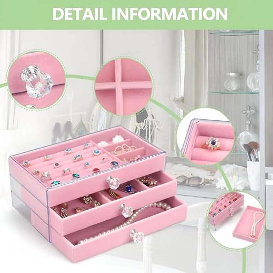 EGPاكتشفوا صندوق المجوهرات الرائع باللون البينك، الذي يجمع بين الأناقة والعملية ليكون الحل المثالي لتنظيم إكسسواراتكم المفضلة. يتميز صندوق الأكريليك بتصميم مرن يحتوي على 3 أدراج قابلة للتعديل مع فواصل قابلة للتغيير، مما يتيح لك تخصيص المساحة حسب احتياجاتك الخاصة. كما أن التصميم الشفاف يحمي المجوهرات من الغبار ويسهل تنظيفه باستخدام قطعة قماش مبللة، مما يجعله خيارًا ممتازًا لعشاق الموضة. لا يقتصر استخدامه على المجوهرات فحسب، بل يمكن استخدامه أيضًا لتخزين مستحضرات التجميل أو أي عناصر تحتاج إلى تنظيم. مع أبعاد مثالية (9.4 بوصة × 5.8 بوصة × 4.3 بوصة)، يعد صندوق التخزين إضافة عملية لأي منطقة تجميل أو غرفة ملابس، بينما تضيف الصواني المخملية لمسة من الفخامة وتحافظ على مجوهراتك بأفضل حال. إنه الهدية المثالية لمناسبات مختلفة مثل عيد الحب، عيد الميلاد، عيد الأم، أو حفلات الزفاف، سواء لنفسك أو لمفاجأة شخص عزيز. اجعلوا تنظيم إكسسواراتكم تجربة فريدة وممتعة مع صندوق المجوهرات الأنيق!