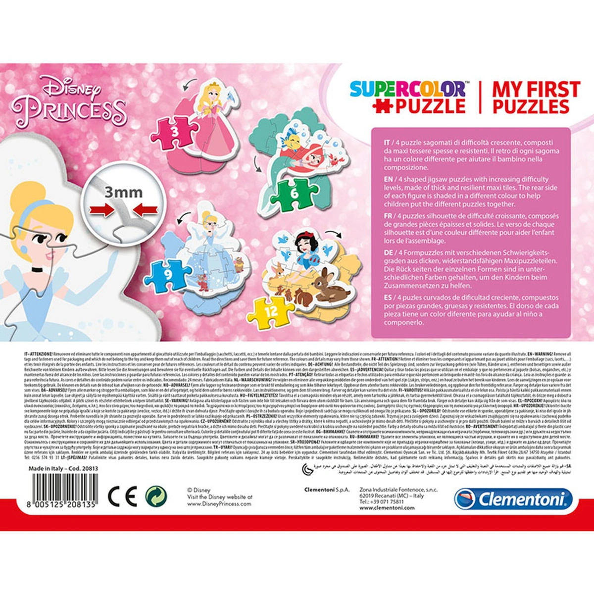 تقدم لك ماركة كليمنتوني بازل ديزني الأميرة، المثالي للأطفال من عمر سنتين إلى ثلاث سنوات، حيث يتكون من قطع ملونة تبلغ (3+6+9+12) قطعة، مما يجعله خيارًا ممتازًا لتطوير التركيز والمهارات اليدوية لدى الصغار. يتميز هذا البازل بصورة رائعة مستوحاة من عالم الأميرات، مما يجعل تجربة التركيب ممتعة وتعليمية في نفس الوقت. يساهم في تعزيز الإبداع والخيال لدى الأطفال، ويتيح لهم الاستمتاع بإنشاء الصورة النهائية بكل سهولة ويسر.