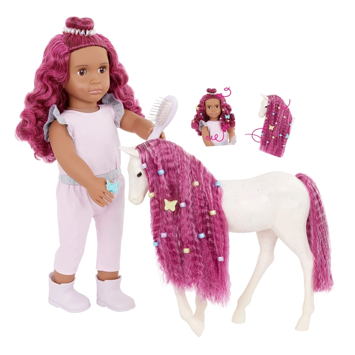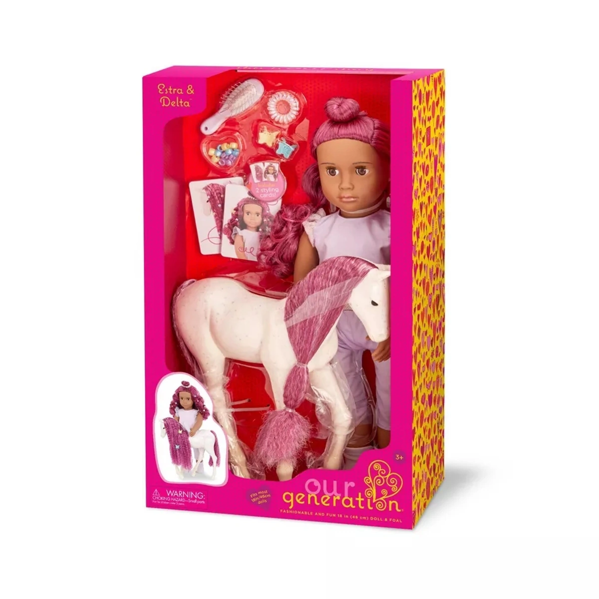 تقدم لكم "Our Generation" دمية إسترا ودلتا الرائعة، التي ستكون رفيقة مميزة لكل الأطفال من عمر 3 إلى 5 سنوات. تتميز هذه الدمية البالغة 18 بوصة بشعر فوشيا متناسق يمكن تصفيفه وتجديده في كل مرة، مما يتيح للأطفال إبداع تسريحات جديدة مع طقم التجميل الشامل الذي يأتي معها، والذي يشمل فرشاة شعر، مطاط شعر حلزوني، و12 حبة شعر ملونة. إنها ليست مجرد دمية، بل هي تجربة سحرية مع قفزات وضحكات، حيث تأتي مع مشبك مخلب الفراشة الذي يضيف لمسة ممتعة أثناء اللعب. يجذب جسمها الناعم القابل للاحتضان وعيونها البنية النابضة بالحياة، مع غمازات لطيفة تضفي عليها جاذبية خاصة، إلى جانب قميصها الوردي الأنيق المزود بأزرار سهلة الفتح. تعتبر هذه الدمية خياراً مثالياً كهدية، حيث تشجع الأطفال على المزج والمطابقة واستكشاف المزيد من المجموعات الرائعة، مما يعزز خيالهم ويحفزهم على ابتكار قصصهم الفريدة. لا تتطلب الدمية بطاريات، مما يجعلها صديقة للبيئة وسهلة الاستخدام. اختر دمية إسترا ودلتا لتمنح طفلك تجربة لعب مليئة بالإبداع والمرح!