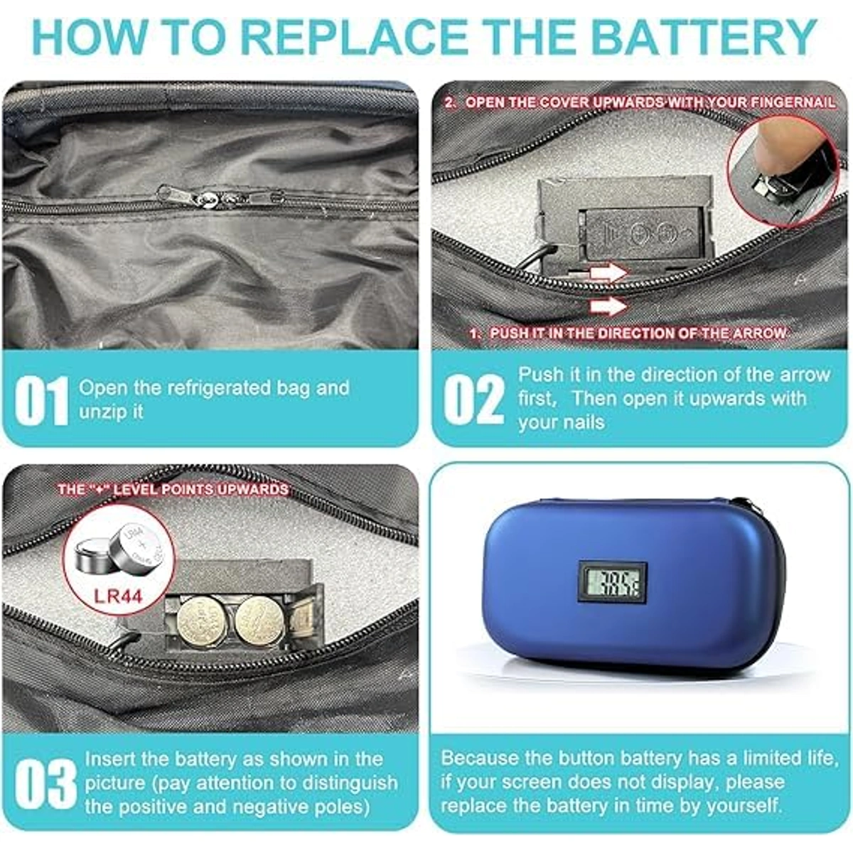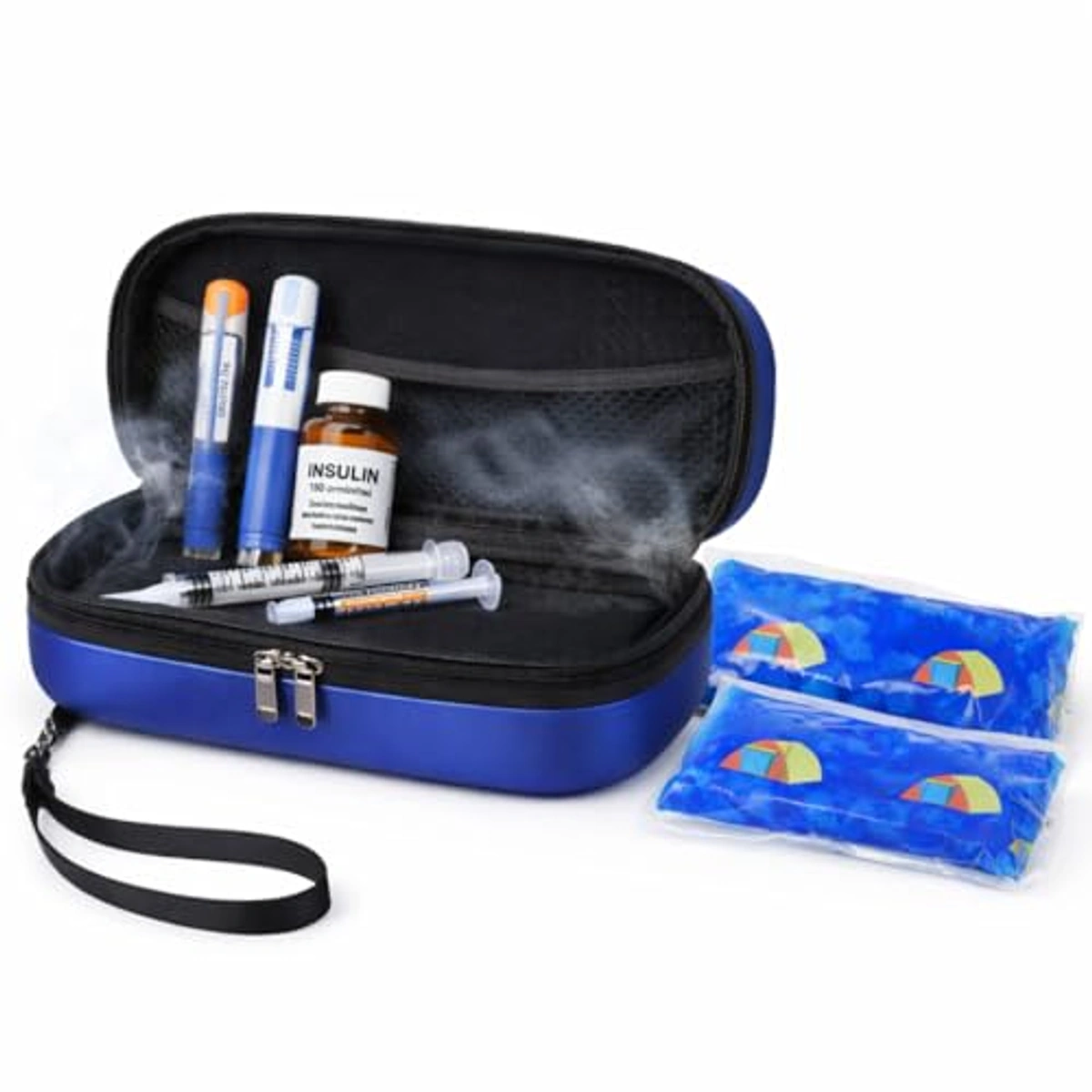 حافظة تبريد إنسولين بتصميم محمول تساعد على حفظ الأدوية الحساسة أثناء السفر والتنقل، مع شاشة حرارة وتصميم مقاوم للماء لسهولة الاستخدام.