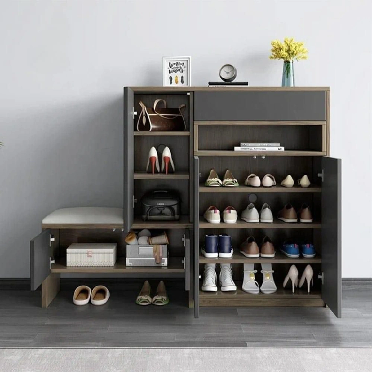 - تصميم عملي: يوفر مساحة منظمة لتخزين الأحذية بشكل أنيق