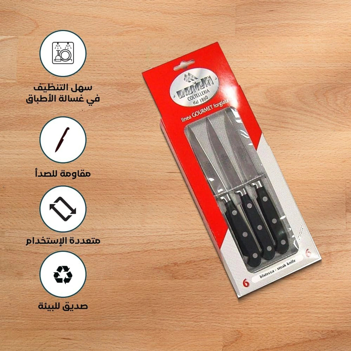 طقم سكاكين مائدة عملية للتقطيع اليومي وتناسب الاستخدام في المطبخ أو السفرة. مريحة وعملية في الاستخدام.