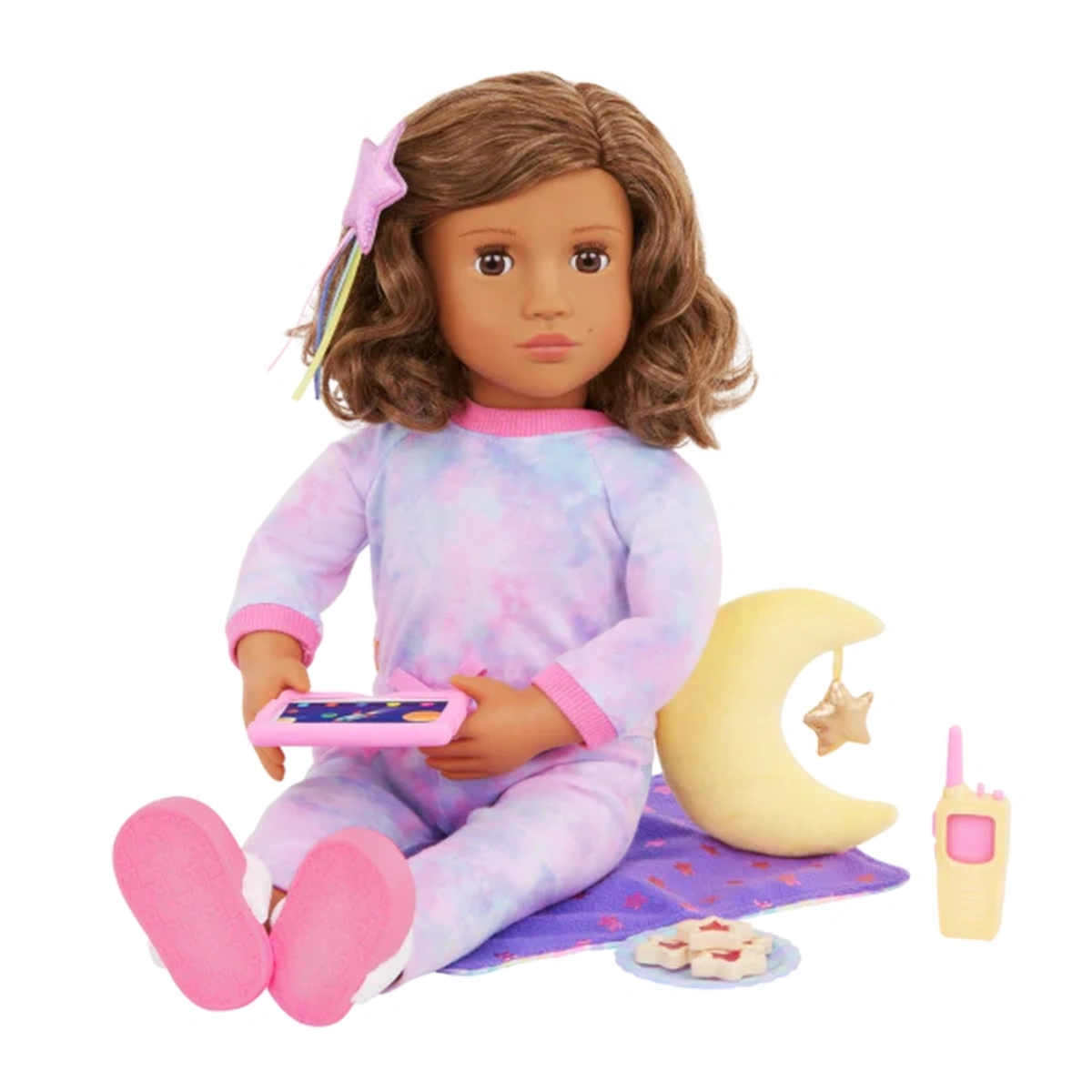 استمتع بتجربة لعب فريدة مع دمية لونا القابلة للتحريك من ماركة Our Generation، الموديل BD31490AZ، التي تعد مثالية لحفلات النوم. تأتي دمية لونا بحجم 18 بوصة، مما يجعلها مناسبة تمامًا للعب والتفاعل. تشمل المجموعة الملحقات الفريدة مثل بطانية مريحة، وسادة قمرية، مجموعة من البسكويت، جهاز لوحي وهمي، وجهاز اتصال لاسلكي، مما يزيد من متعة اللعب. كما يتضمن المنتج كتاب قصص مصور، مما يساعد الأطفال على القراءة واسترجاع مغامرات لونا المثيرة. تتميز الدمية بقدرتها على التحريك، حيث يمكنها ثني ذراعيها وساقيها لخلق أوضاع ممتعة، مما يسهل على الأطفال تخيل قصصهم الفريدة. جسم لونا الناعم القابل للعناق وشعرها البني المموج يسهل تصفيفه، بينما عيونها البنية الفاتحة التي تغلق عند وقت الأحلام تضيف لمسة سحرية. ترتدي لونا بيجامة مصبوغة بالربط مع زوج لطيف من النعال ومشبك شعر على شكل نجمة متساقطة، مما يجعلها مثالية كهدية للأطفال من سن 3 سنوات فما فوق. لا تتطلب دمية لونا بطاريات، مما يوفر تجربة لعب مستمرة وشيقة، بينما تشجع الأطفال على تطوير مهاراتهم الإبداعية واستكشاف عوالم جديدة من الخيال.