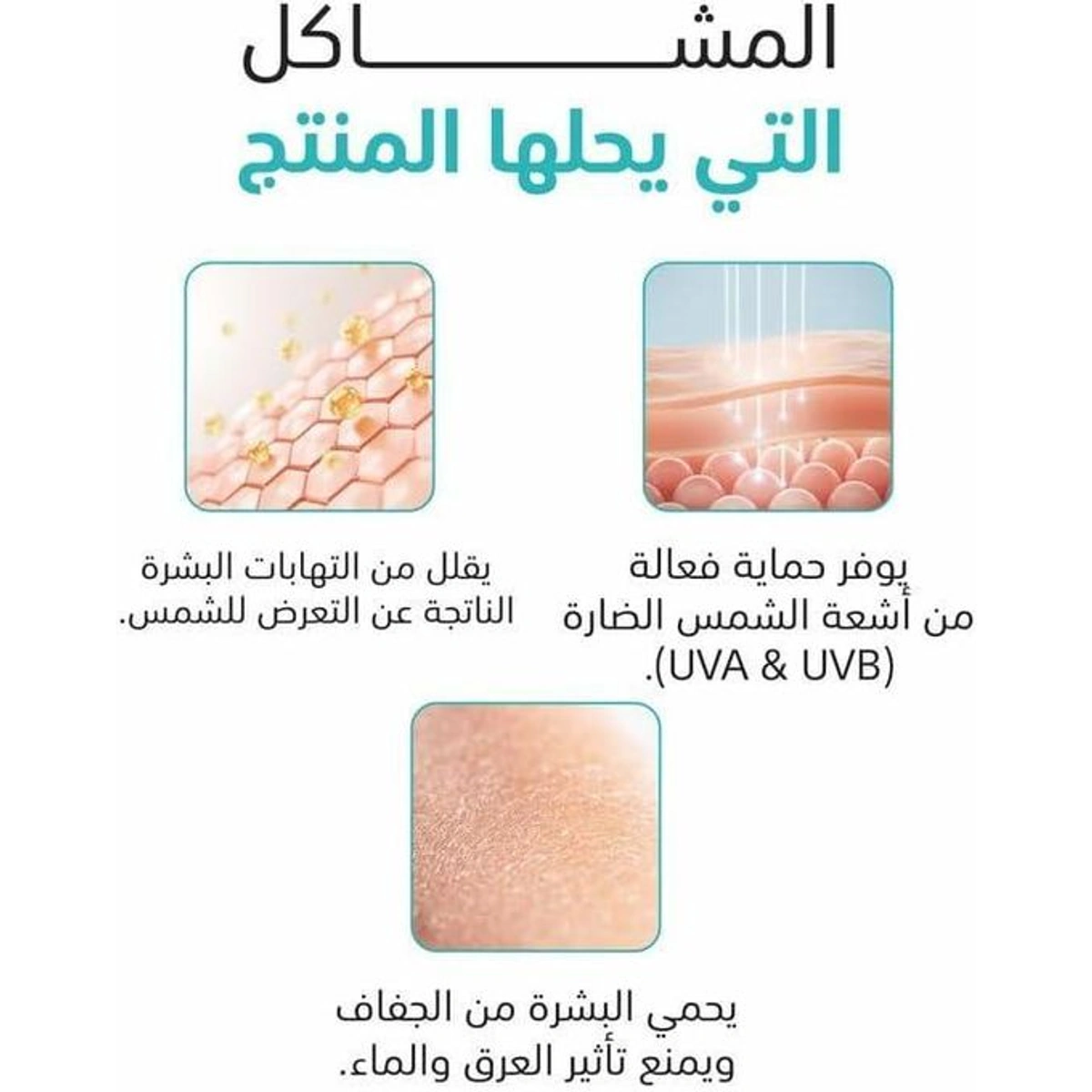 Enjoy superior sun protection with Nawah Sunscreen Cream SPF 50+. Its lightweight, non-greasy formula shields your skin from UVA/UVB rays and prevents premature aging, leaving your skin healthy and hydrated.