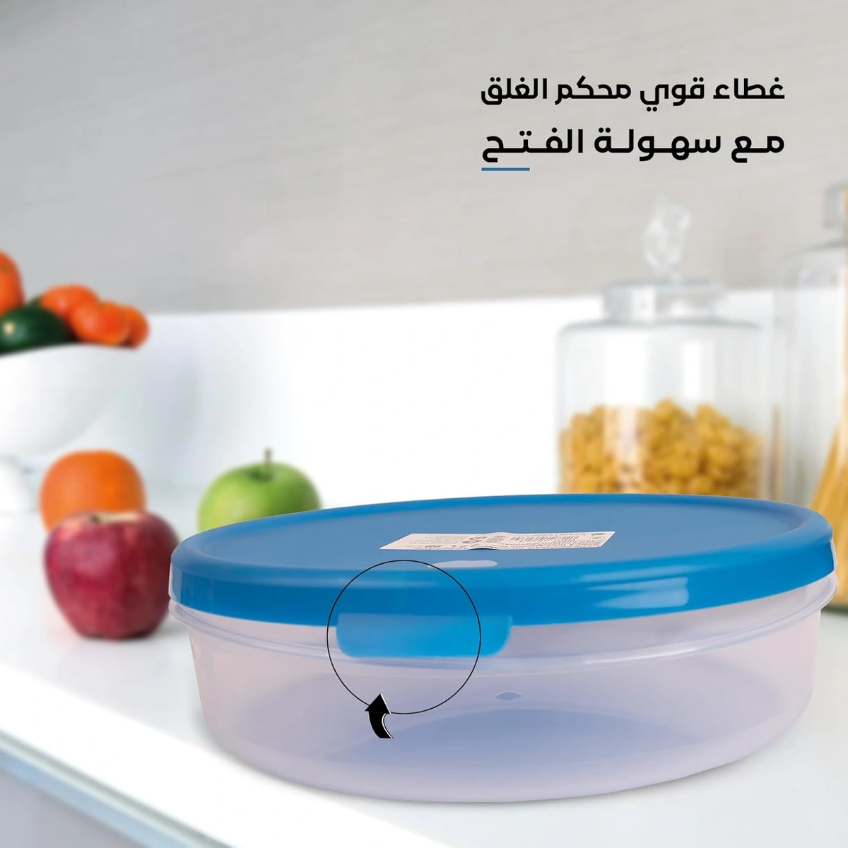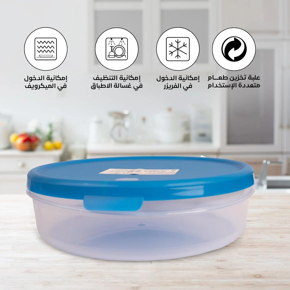 علبة حفظ طعام دائرية دائرية وعملية لحفظ الأكل أو بقايا الوجبات بشكل مرتب. مناسبة للاستخدام اليومي وسهلة التنظيف.
