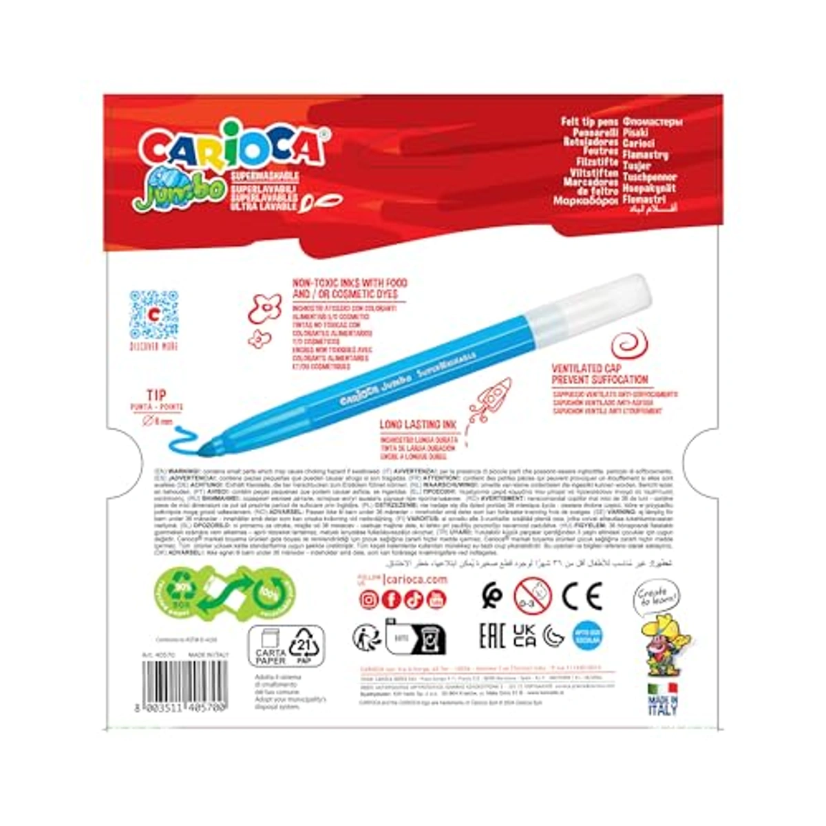 Unleash your creativity with the Jumbo Maxi Felt Tip Pens Set, featuring 24 vibrant colors. Enjoy a wide range of brilliant hues for unparalleled drawing and coloring, made in Italy with high quality.