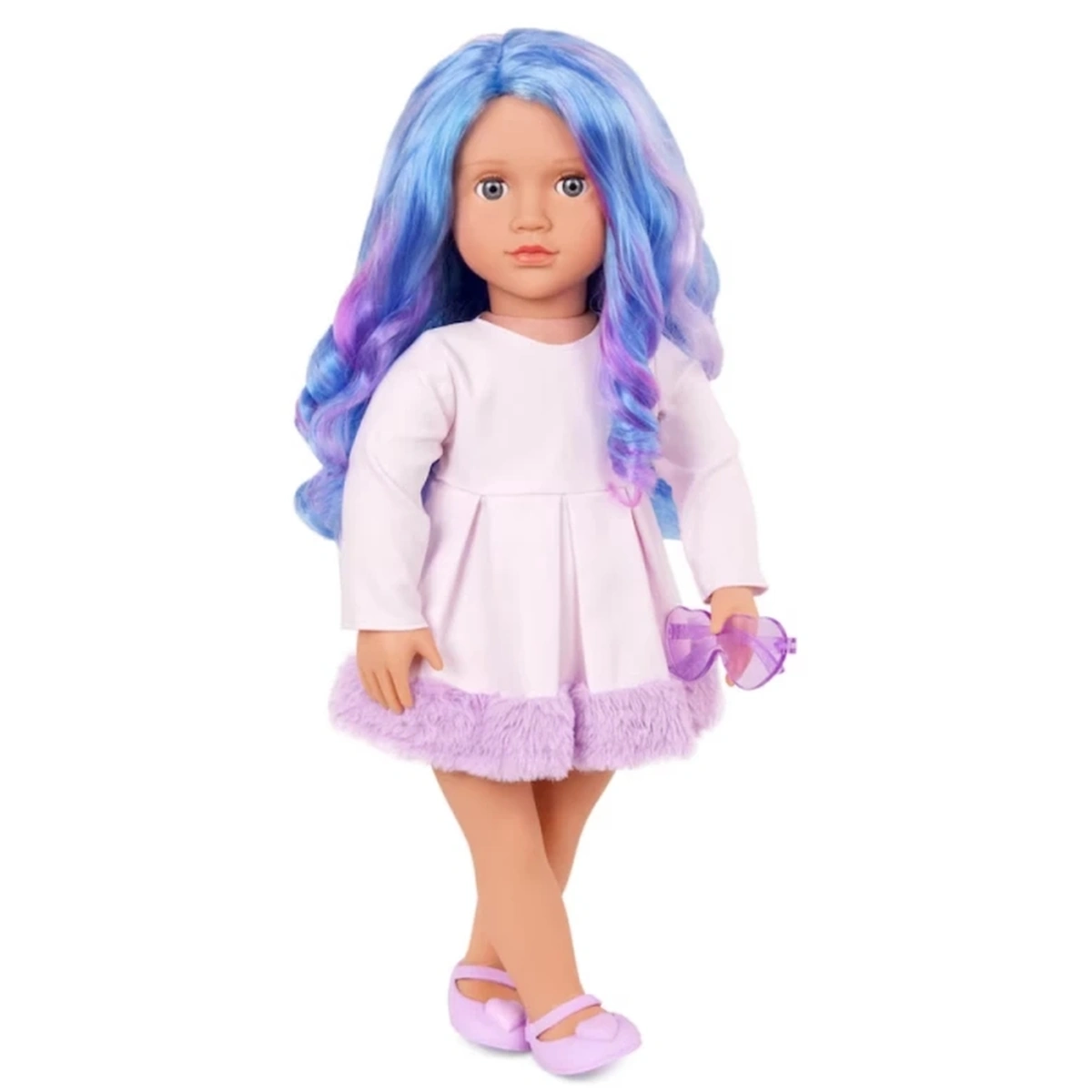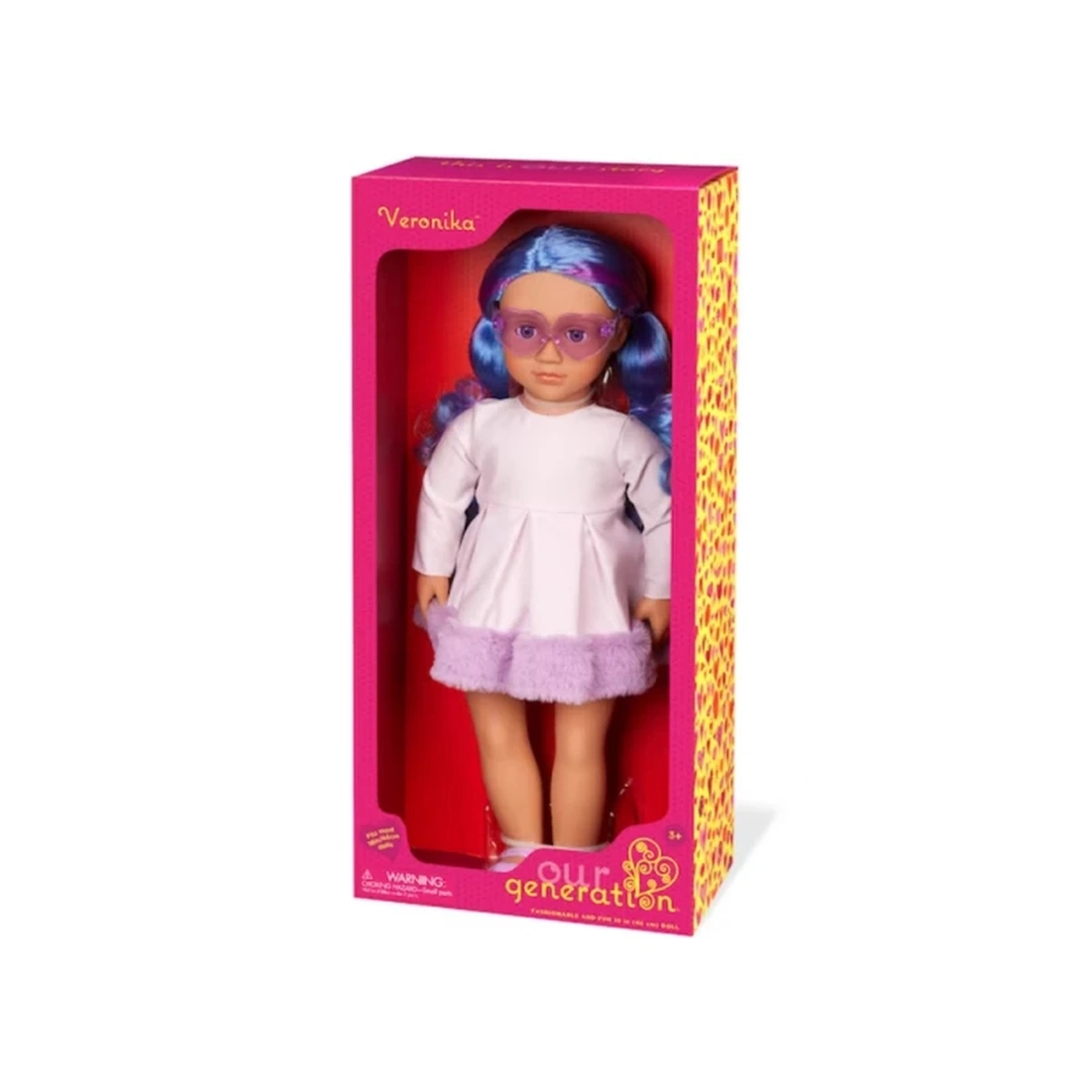اكتشفي عالم الإبداع والمرح مع دمية الموضة فيرونيكا من ماركة Our Generation، التي تأتي بطول 46 سم (18 بوصة) لتناسب يد الأطفال من عمر 3 إلى 5 سنوات. تتميز فيرونيكا بشعرها الأزرق الزاهي مع خصلات بنفسجية لامعة، مما يجعلها مثالية لإنشاء تسريحات متنوعة مثل ذيل الحصان والضفائر. ملامحها النابضة بالحياة، بما في ذلك العيون الزرقاء التي تفتح وتغلق، تضيف لمسة من السحر والواقعية. تم تصميم زيها الأنيق الذي يضم فستان مزين بزخارف من الفرو الصناعي ونظارة شمسية على شكل قلب، ليكون سهل الارتداء بفضل إغلاقه السهل، مما يمنح الأطفال حرية الابتكار في تنسيق الإطلالات. اجمعي فيرونيكا مع أصدقاءها مثل روزا وميرابيل لتصبح لديكِ مجموعة مدهشة من الصداقة، واستمتعي بتجربة اللعب التي لا تحتاج إلى بطاريات، مما يسمح لكِ بالاستمتاع بكل لحظة. ابدئي مغامرتك مع فيرونيكا وابتكري أنماطاً جديدة ومبتكرة كل يوم!