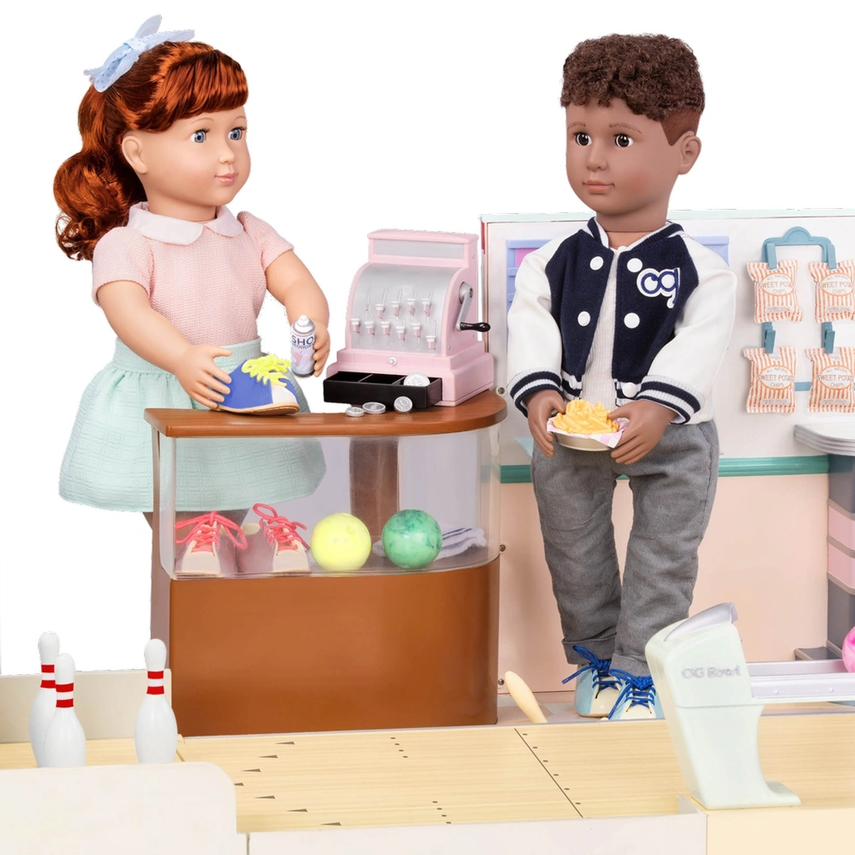 اكتشفوا المرح واللعب مع طقم ألعاب بولينج للدمى من ماركة "Our Generation"! صمم هذا الطقم المذهل ليتناسب مع الدمى التي يبلغ ارتفاعها 18 بوصة، حيث يوفر تجربة لعب ممتعة ومليئة بالتشويق. يمكنكم إعداد الدبابيس على حارة البولينج واستخدام المفتاح لرفعها واسترجاع الكرة، مما يجعل كل مباراة مليئة بالتحدي. بالإضافة إلى ذلك، يحتوي الطقم على منصة أمين الصندوق التي تتيح للدمى اختيار مقاس الأحذية وشراء الوجبات الخفيفة، مما يضيف بعدًا آخر للعب. كما أن ماكينة تسجيل النقود تصدر أصواتًا مبهجة عند فتحها، مما يضفي جوًا من السعادة والمرح. مع تفاصيل واقعية تشمل الهاتف الدوار على الحائط ولوحة النتائج القديمة، ستشعر الفتيات وكأنهن في عالم حقيقي من المرح. لا تنسوا تشغيل جهاز عرض الإضاءة والأصوات لإضاءة الممرات أثناء الحفلة، واستمتعوا بتناول الوجبات الخفيفة اللذيذة من عجلة الهوت دوج الدوارة. هذا الطقم مناسب للفتيات من عمر 4 إلى 8 سنوات، ويحتاج إلى 6 بطاريات AA و3 بطاريات AAA. اجعلوا أوقات اللعب أكثر متعة مع طقم ألعاب بولينج للدمى من "Our Generation"!