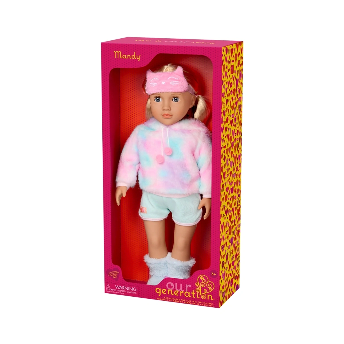 اكتشفوا عالم المرح والإبداع مع دمية ماندي من ماركة "Our Generation" (الموديل: BD31592Z)، التي تتميز بتصميم قطة رائع يجعلها رفيقة مثالية لحفلات النوم الممتعة! تأتي دمية ماندي بمقاس 18 بوصة، مما يجعلها سهلة الحمل واللعب بها. تتمتع بملامح واقعية وجسم ناعم قابل للعناق، بالإضافة إلى شعرها الأشقر الداكن الذي يمكن تصفيفه بطرق متنوعة، مما يضيف لمسة من الإبداع أثناء اللعب. عيونها الرمادية الفريدة تغلق فعلاً عند النوم، مما يجعلها تبدو أكثر واقعية. تأتي الدمية مع بيجامة مريحة مستوحاة من القطط، تحتوي على آذان لطيفة على غطاء الرأس، وجوارب مخملية متطابقة وقناع عين قطة لإكمال المظهر الجذاب. تصميمها السهل الارتداء يجعلها مثالية للأطفال الذين يحبون التنكر والمغامرة. دمية ماندي ليست مجرد لعبة، بل هي مصدر إلهام لأفكار إبداعية جديدة، وتشجع الأطفال على المزج والتنسيق في ملابسهم. تعتبر هذه الدمية هدية مثالية للأطفال من عمر 3 سنوات فما فوق، وتوفر لهم ساعات من المتعة بدون الحاجة إلى بطاريات. دع أطفالكم يستمتعون بحفلة نوم مذهلة مع دمية ماندي!