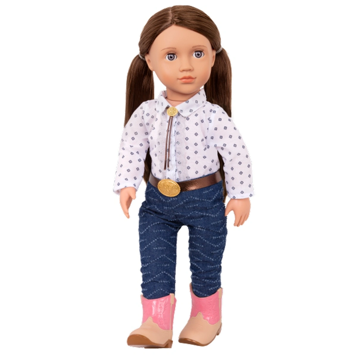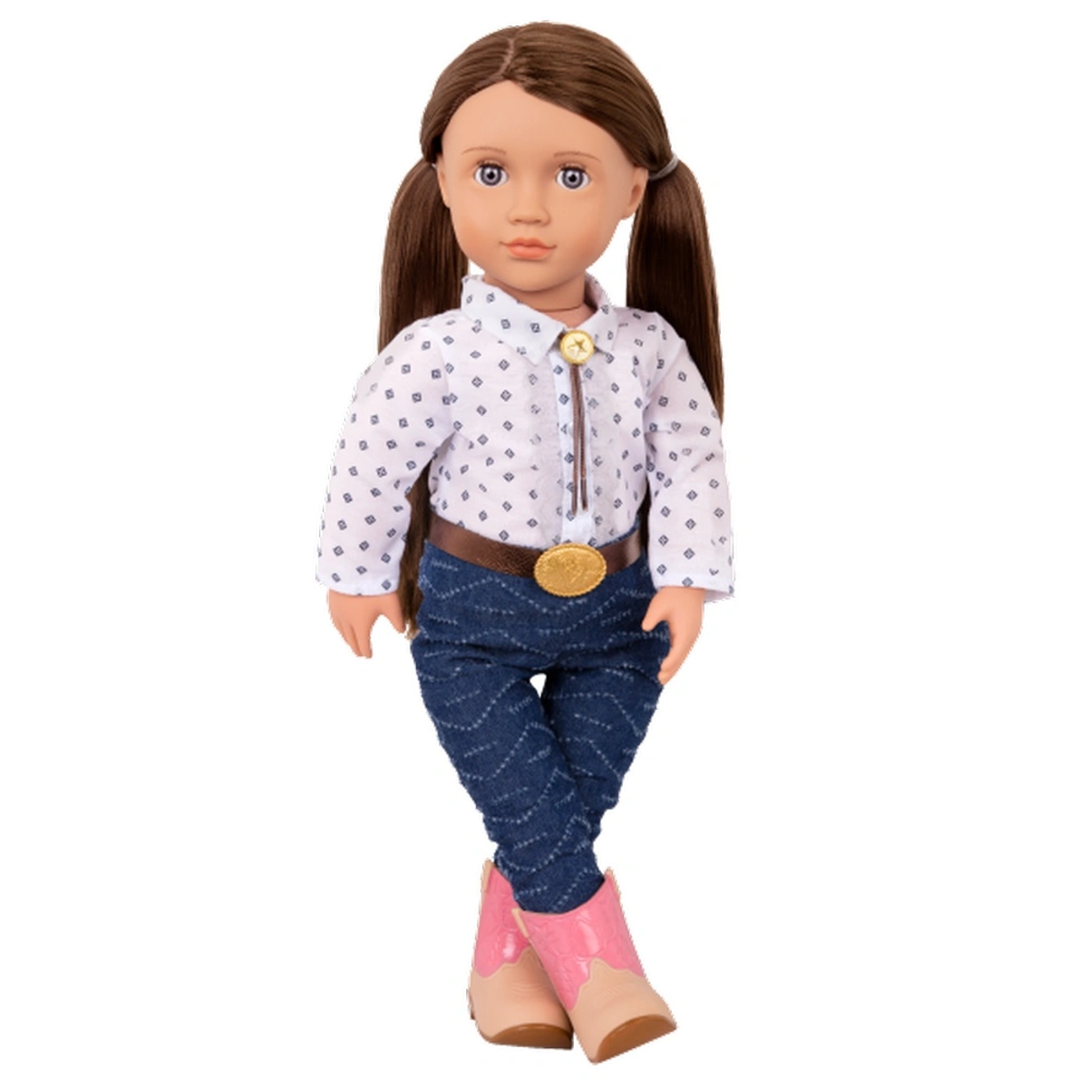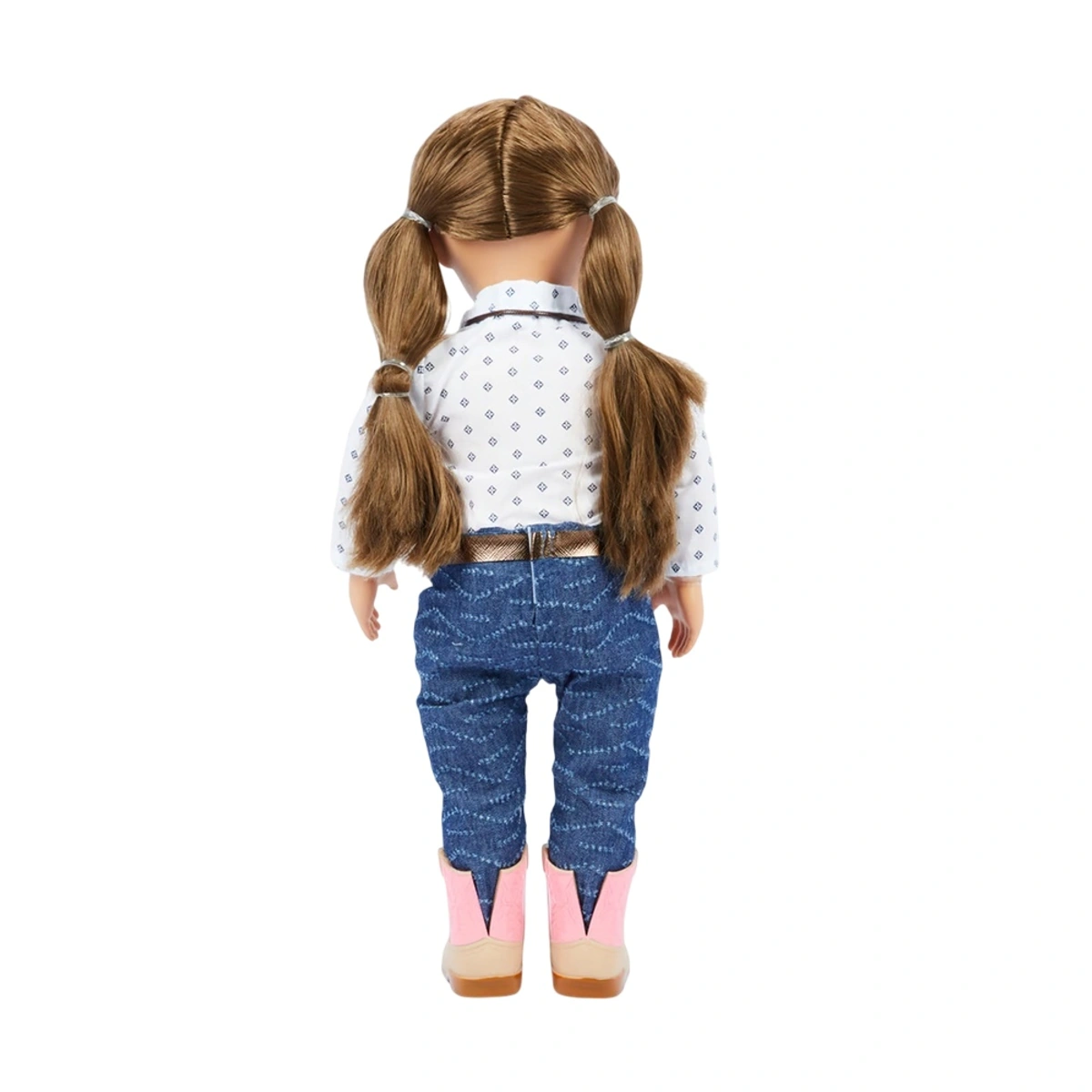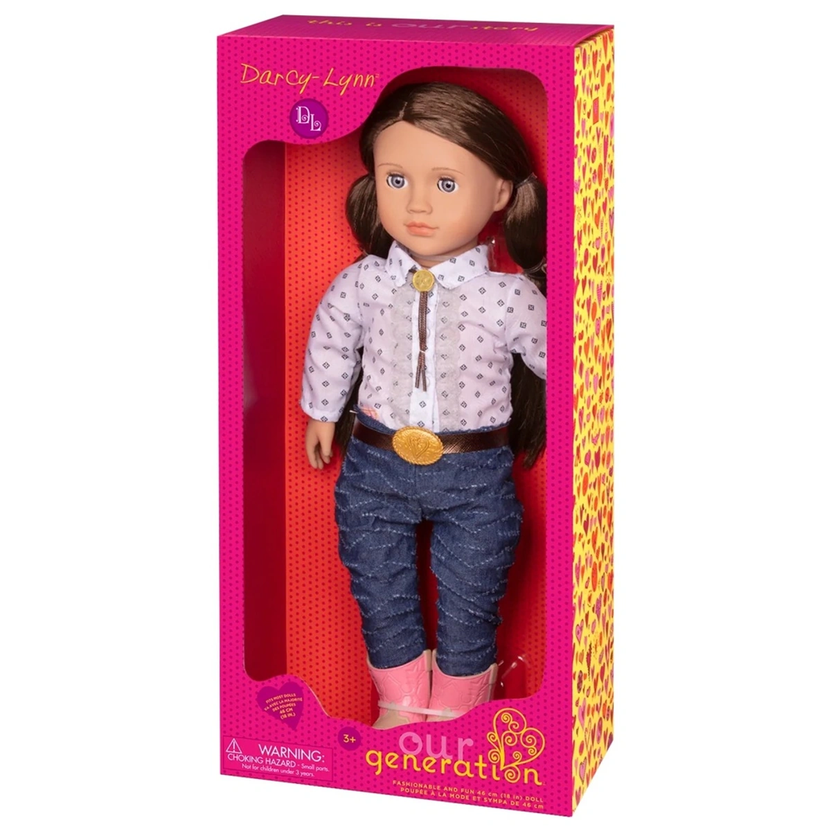 اكتشفوا عالم المغامرة مع دمية "دارسي" من ماركة "Our Generation"، الموديل BD31198، التي تأتي بحجم 18 بوصة، مما يجعلها مثالية لركوب الخيل واستكشاف الطبيعة. تتميز دمية دارسي-لين بتصميم فريد، حيث تحمل عيونًا زرقاء بنفسجية وشعرًا طويلًا أملس، مما يضيف لمسة من الأناقة والجمال. أما أزياؤها الغربية الأنيقة، فتشمل قميصًا منقوشًا بأزرار مع ربطة عنق ذهبية، بالإضافة إلى الجينز المنقوش الذي يتناسب مع إطلالتها العصرية. ولإكمال مظهرها الجذاب، ترتدي دارسي حذاءً راعية البقر باللونين الوردي والبيج مع نقش لطيف، مما يجعلها الخيار الأمثل للبنات من عمر 3 إلى 5 سنوات. والأفضل من ذلك، أن دمية دارسي لا تحتاج إلى بطاريات، مما يجعلها سهلة الاستخدام ومناسبة للعب المستمر. امنحي طفلتك فرصة الإبداع والاستمتاع مع دمية دارسي، رفيقة المغامرات المثالية!