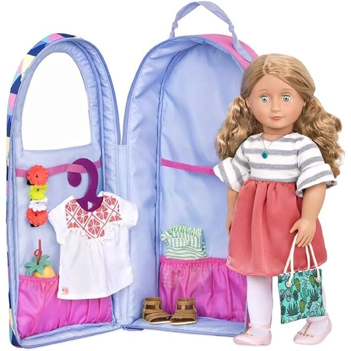 تعرفي على حقيبة حمل الدمية الأنيقة من ماركة Our Generation، المصممة خصيصاً لتوفير تجربة لعب ممتعة للبنات من عمر 3 إلى 5 سنوات. تتميز هذه الحقيبة، المقاس 18 بوصة، بتصميمها الهندسي الجذاب الذي يضيف لمسة فريدة لمغامرات اللعب. تضم الحقيبة أشرطة داخلية تضمن أمان دميتك، بالإضافة إلى نافذة بلاستيكية تتيح لك الاطمئنان عليها في أي وقت. مع أحزمة الظهر القابلة للتعديل، يمكنكِ حمل الحقيبة بكل سهولة وراحة، بينما توفر الجيوب الداخلية المرنة مساحة كافية لتخزين جميع إكسسوارات الدمية من أحذية ومجوهرات. كما يمكنكِ تنظيم الملابس بسهولة من خلال إمكانية تعليقها على أحد أحزمة الملابس. لا تحتاج هذه الحقيبة إلى بطاريات، مما يجعلها خيارًا مثاليًا ومريحًا للاستخدام اليومي. اجعلي تجارب اللعب أكثر متعة وأمانًا مع حقيبة حمل دمية Our Generation!