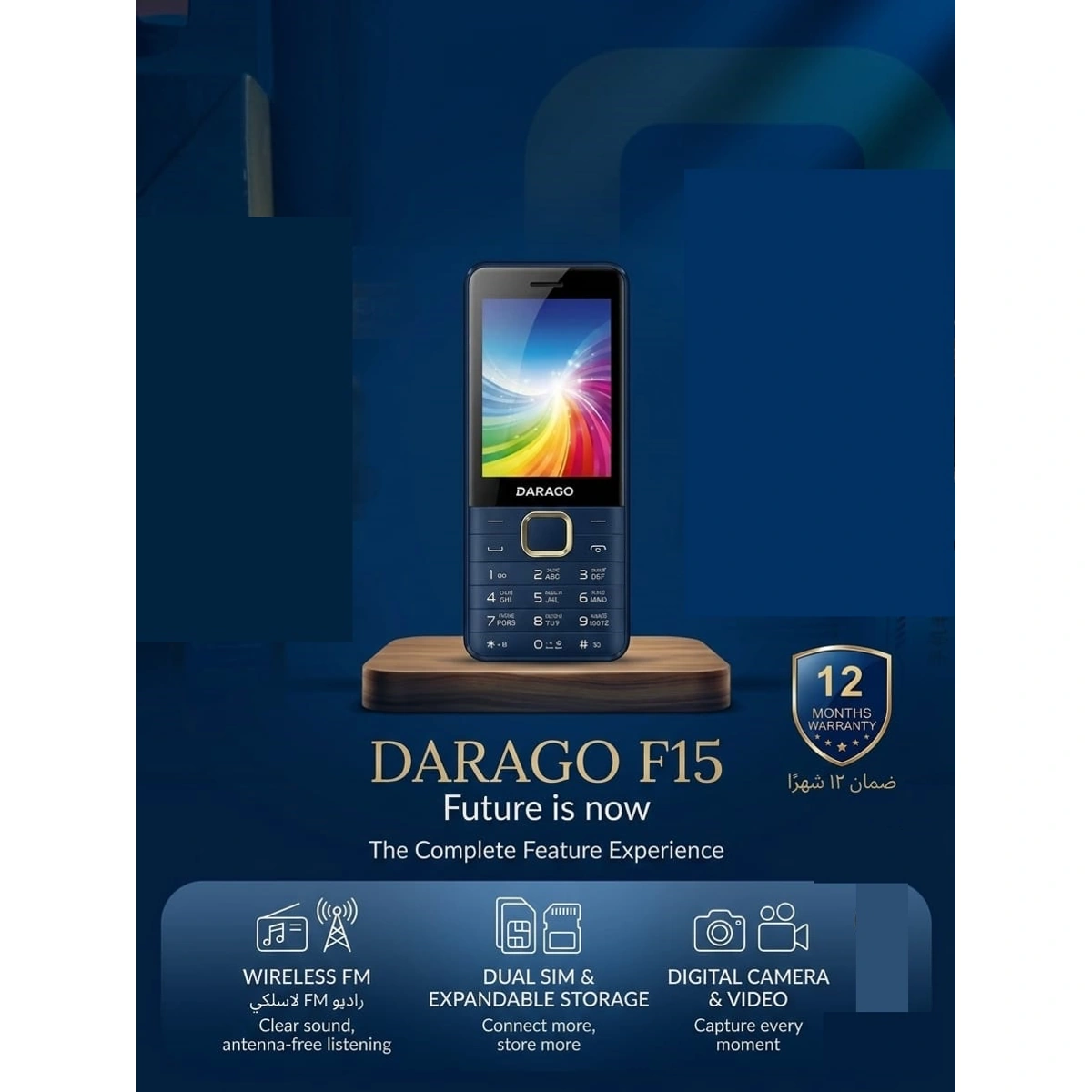 موبايل داراجو F15 هو رفيقك العملي اليومي، يتميز بشاشة ملونة واضحة وراديو FM لاسلكي لتجربة ترفيهية متكاملة. استمتع ببطارية تدوم طويلاً وتصميم مريح، كل ده بسعر مناسب جداً.