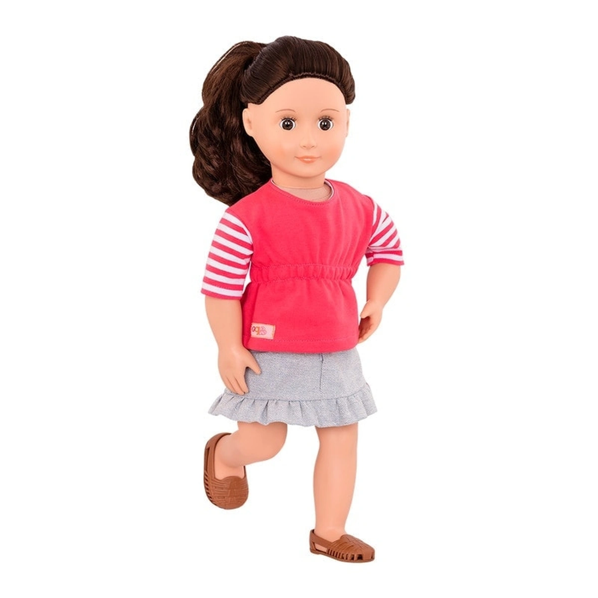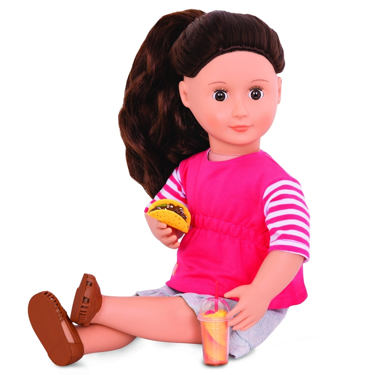 تقدم لك "أور جينيريشن" الموديل BD31254Z، وهي دمية مذهلة تُدعى "راينا صاحبة شاحنة الطعام"، التي تعد الخيار المثالي للأطفال من عمر 3 إلى 5 سنوات. تتميز هذه الدمية الفاخرة بطول 18 بوصة، مع عيون بنية دافئة تفتح وتغلق، وشعر بني طويل ومموج يمكن تسريحه بطرق متعددة. تأتي راينا بزي أنيق يتألف من قميص مخطط بأكمام غير رسمية وتنورة جينز فاتحة وصندل أنيق، مما يجعلها محط أنظار الجميع. يمكن لراينا أن تتحرك بسهولة بفضل مرونتها، حيث تنحني عند الركبتين والمرفقين وتدور عند الرقبة والكتفين والوركين، لتشكل مغامراتها الخاصة. بالإضافة إلى ذلك، تحتوي على إكسسوارات ممتعة مثل قبعة جينز وزي مريلة لشاحنة الطعام، ومفكرة لتدوين الطلبات، مما يعزز من تجربة اللعب الإبداعية. هذه الدمية متوافقة مع دمى "أمريكان جيرل"، مما يضيف قيمة إضافية لمجموعتك. مع راينا، ستستمتع ساعات لا تنتهي من المرح والإبداع في عالم المغامرات.