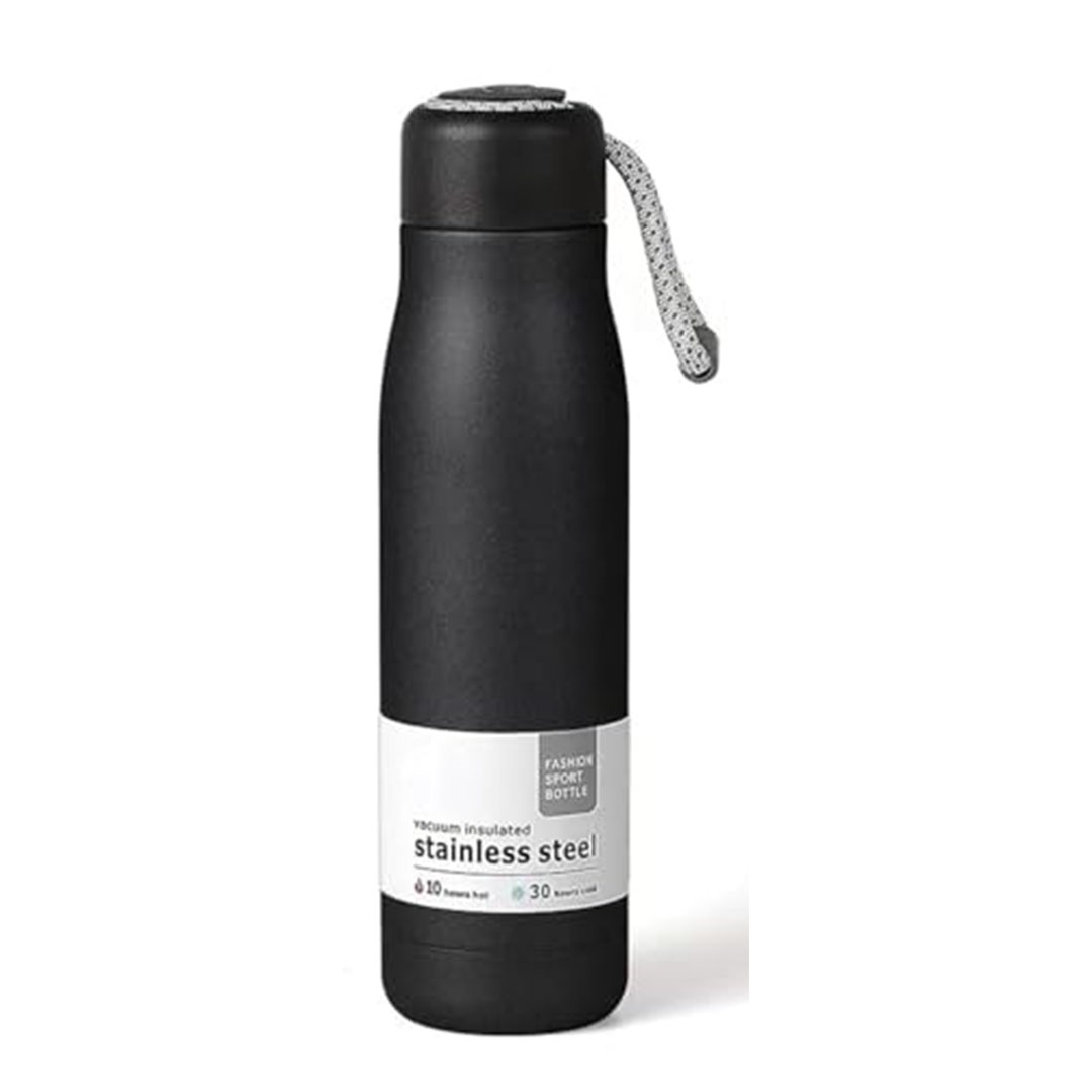 مميزات و مواصفات زجاجة مياه استانلس ستيل معزولة بغطاء - 500 مل - أسود
