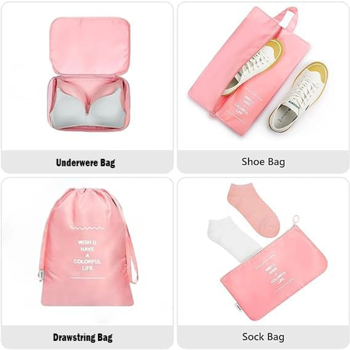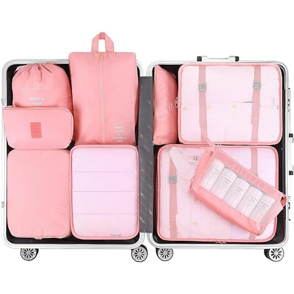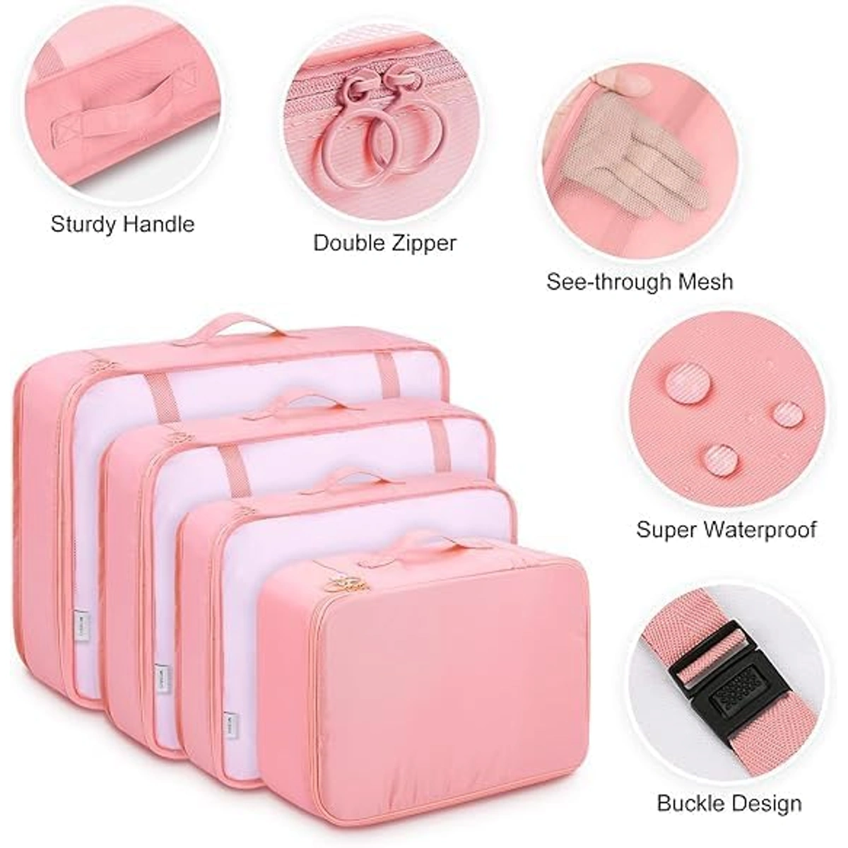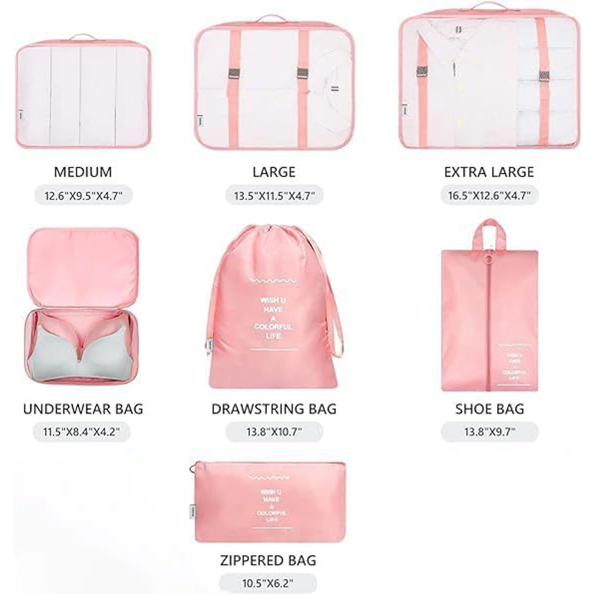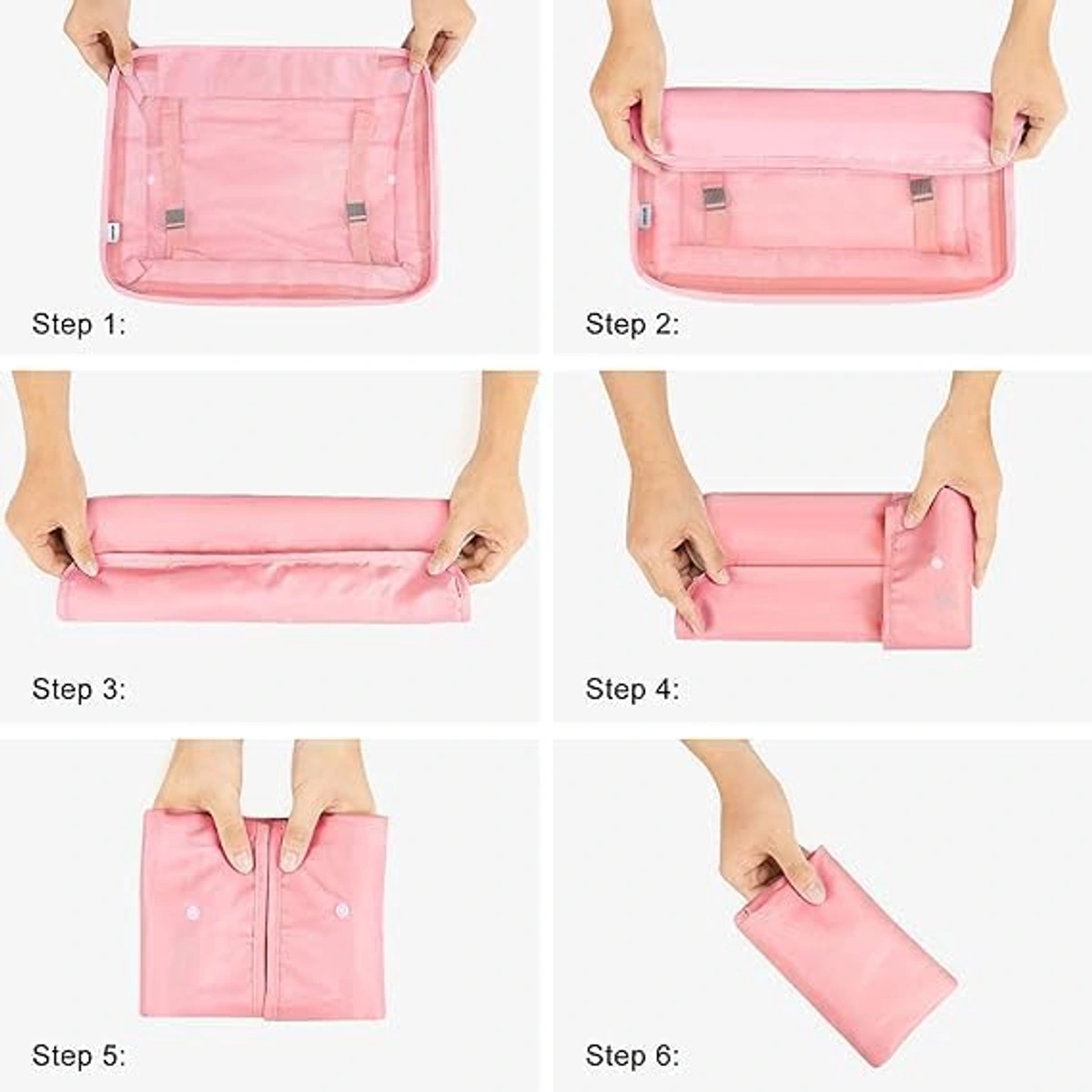 اكتشف مجموعة منظم شنط السفر المكونة من 7 قطع، المصنوعة من خامة البوليستر عالية الجودة، والتي تأتي بلون بينك الجذاب. هذه المجموعة مثالية لتخزين الملابس بفاعلية، حيث تتميز بكونها مقاومة للماء، مما يحافظ على محتوياتك جافة وآمنة أثناء السفر. بحجم 33,78 x 24,69 x 5,41 سم ووزن 481 جرام، ستجعل من تنظيم حقيبتك أمراً سهلاً وممتعاً، مما يتيح لك السفر بأناقة وراحة تامة. اجعل رحلتك أكثر ترتيباً مع هذه المجموعة الرائعة!