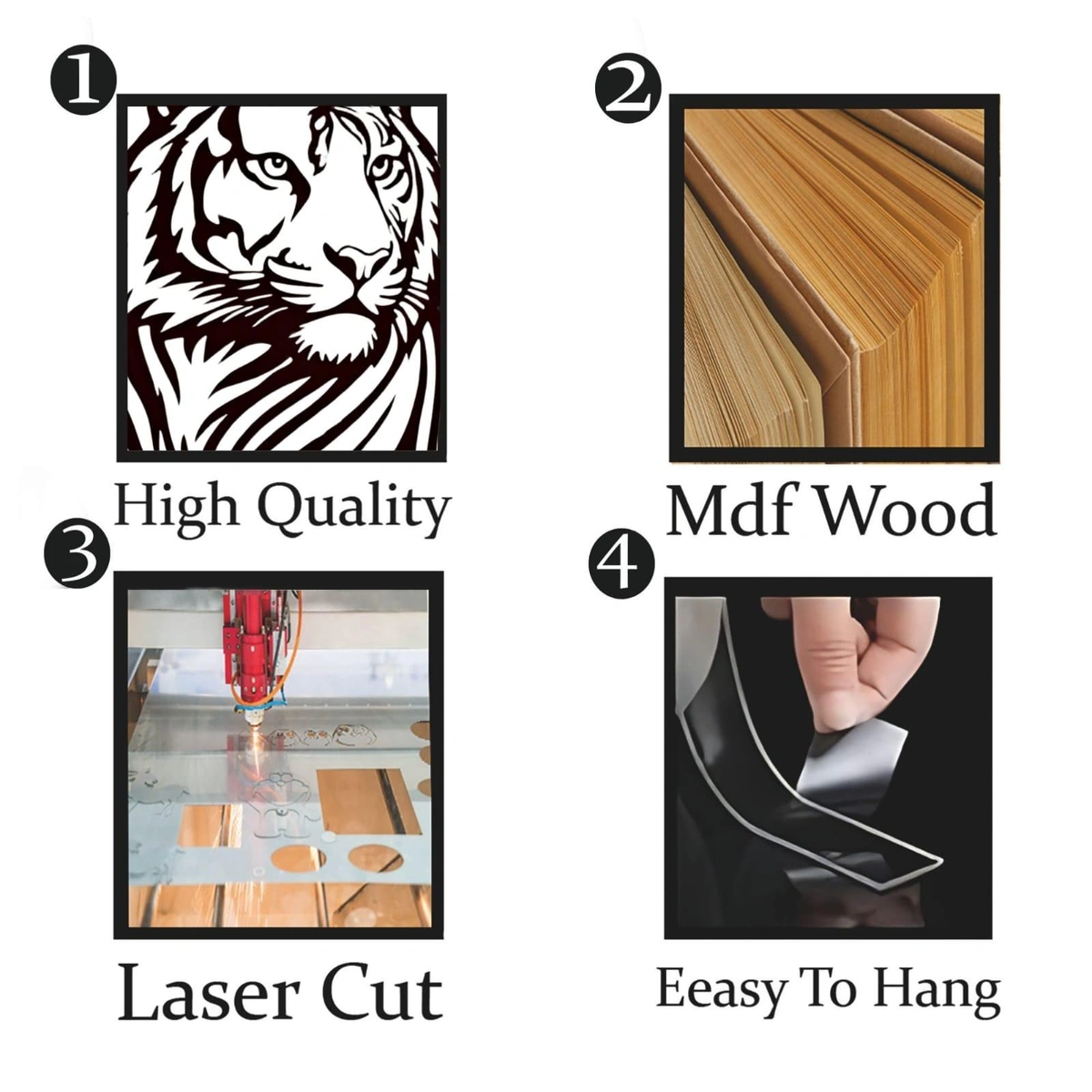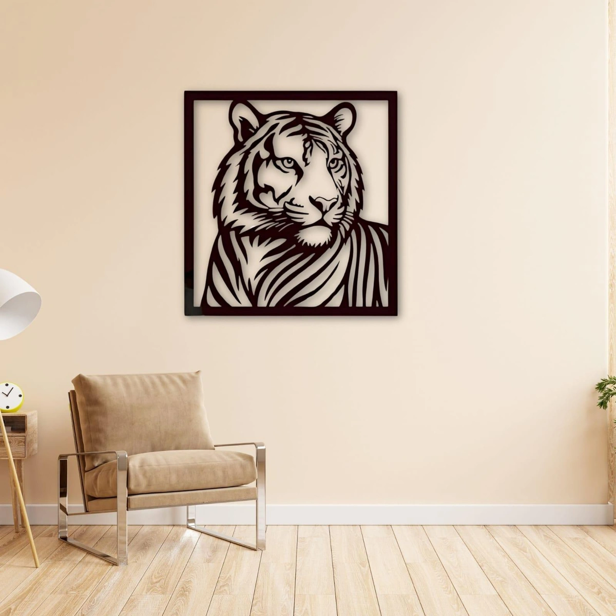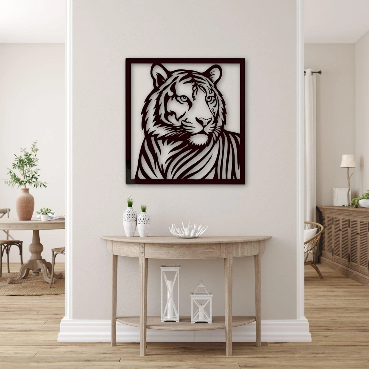 أضف لمسة فنية جريئة وعصرية لمنزلك مع لوحة حائط رأس النمر من ATM المصنوعة من خشب MDF. تصميم مقطوع بالليزر باللون الأسود يخلق تأثيرًا ثلاثي الأبعاد فريدًا يزين جدرانك بأناقة.