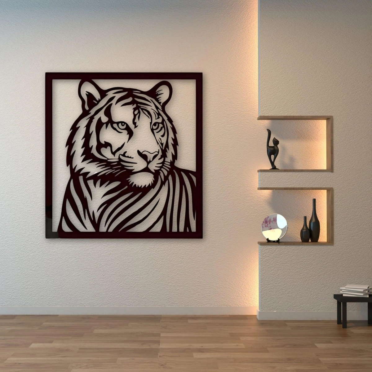 - التصميم: رأس نمر مقطوع بالليزر بتأثير ثلاثي الأبعاد