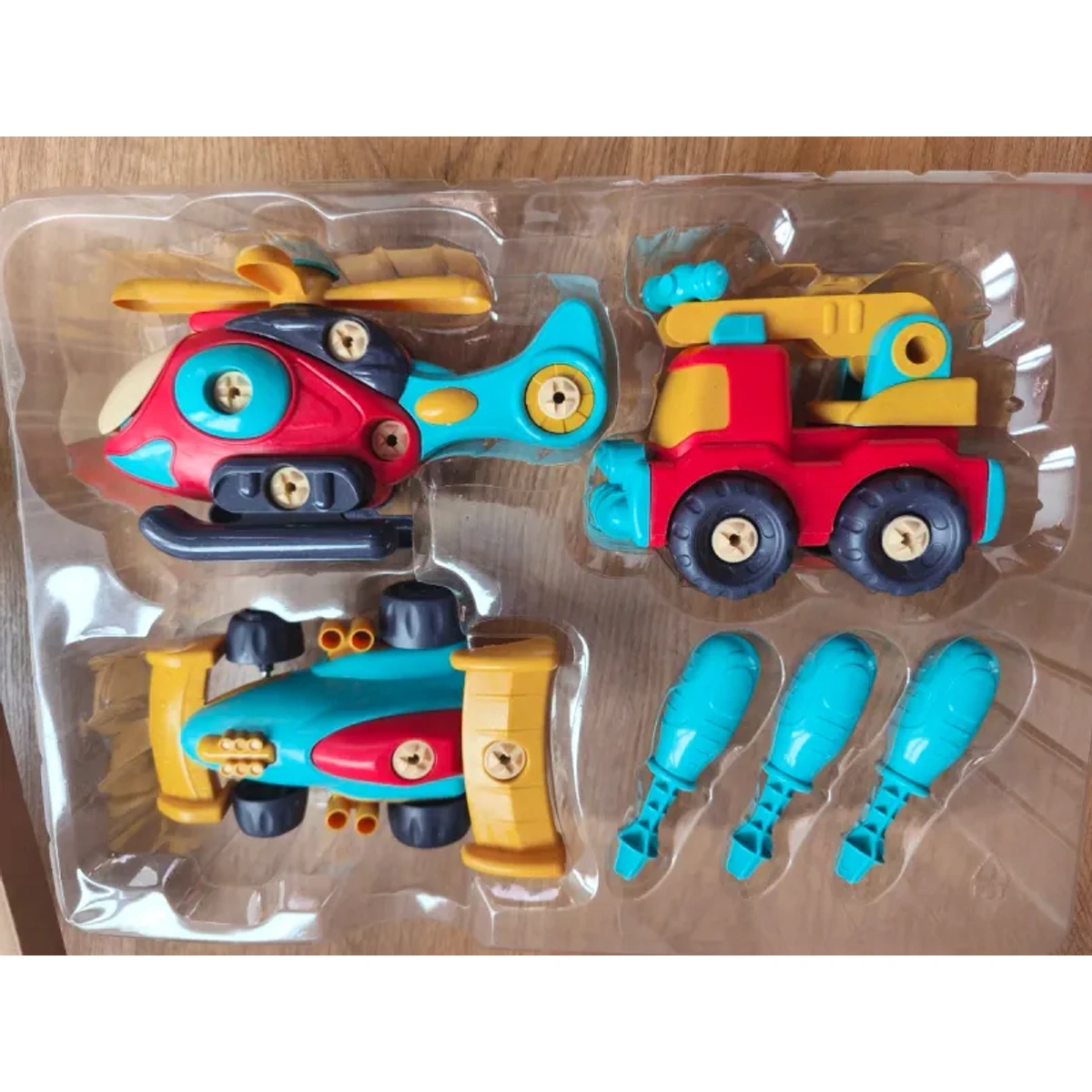 عايز لعبة تنمي مهارات طفلك وتخليه يستمتع ويبدع في نفس الوقت؟ جبنالك لعبة فك وتركيب جامدة جدًا مكونة من 3 أشكال مختلفة: هليكوبتر، عربية مطافي، وعربية سباق! هتساعد طفلك يركب ويفك ويخلق قصص وحكايات جديدة، ومناسبة للأطفال من سن 3 سنين وأكتر.