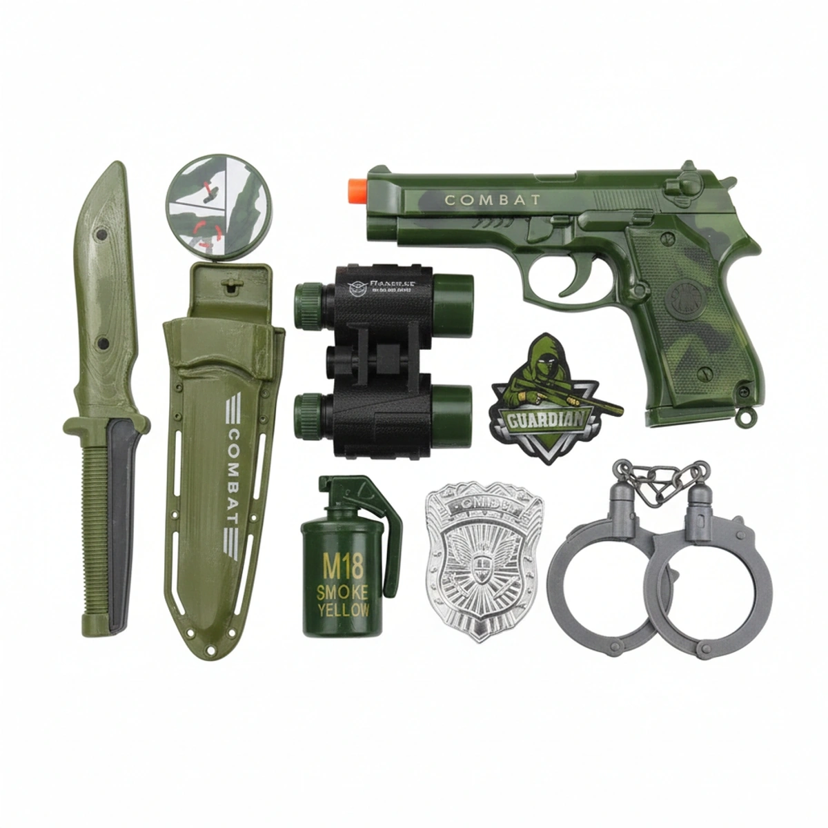 استعد لمغامرات مثيرة مع مجموعة أدوات الجيش المختلفة مع المسدس والأكسسوارات - JS080، المصممة خصيصًا للأطفال من عمر 3 إلى 5 سنوات. هذه المجموعة الرائعة، التي لا تحتاج إلى بطاريات، توفر تجربة لعب واقعية مليئة بالحماس والتشويق. تتضمن المجموعة مسدس لعب، منظار، أصفاد، خنجر، شارة شرطة، وقنبلة، مما يجعلها الخيار المثالي لمحبي المغامرة والإبداع. تشجع هذه اللعبة الأطفال على الانغماس في عالم الخيال، حيث يمكنهم ابتكار قصص مثيرة وتقمص أدوار مختلفة. تقدم مجموعة Military Sleeve Action تجربة لعب نشطة تساهم في تطوير مهارات الأطفال الاجتماعية والإبداعية، مما يجعلها هدية رائعة لكل طفل يحب اللعب الحركي والتخيلي. اجعل عيون أطفالك تتألق من الفرح مع هذه المجموعة المثيرة!