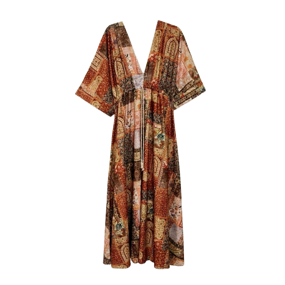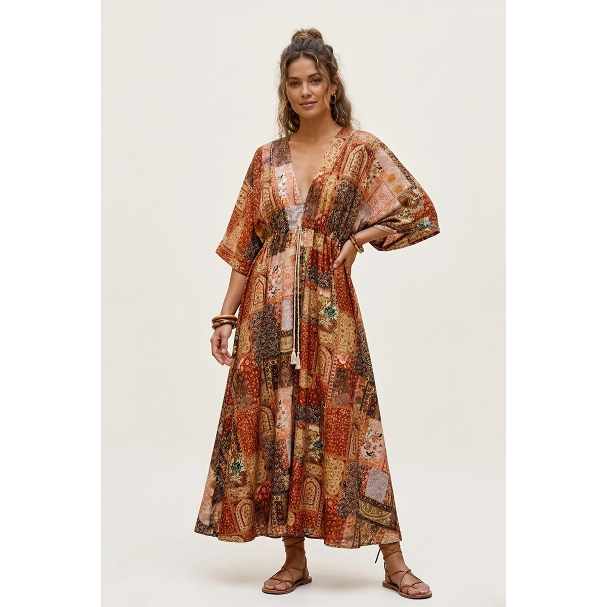 - تصميم عصري: فستان ماكسي بنقشة أنيقة ومميزة لمظهر فريد.