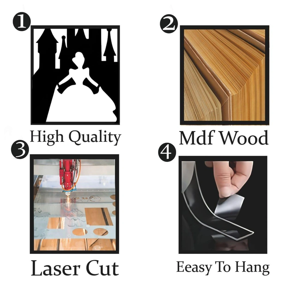 - جودة عالية وحرفية متقنة: مصنوعة من خشب MDF عالي الجودة بقطع ليزر دقيق يضمن تفاصيل وحواف نظيفة.