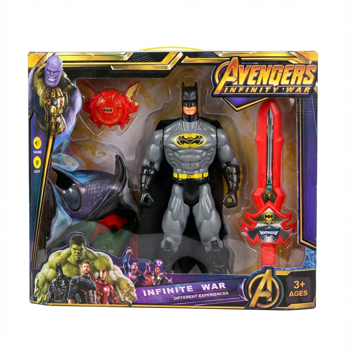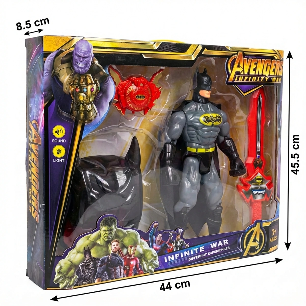 اكتشفوا متعة اللعب مع شخصية بات مان المميزة، التي تأتي مع قناع وسيف مزود بتأثيرات صوتية وضوئية، مثالية للأطفال من سن 3 إلى 5 سنوات. يتميز هذا المجسم الرمادي بطول 40 سم بتفاصيل واقعية تضفي طابعًا واقعيًا على مغامرات الأبطال الخارقين. مصنوعة من مواد متينة وآمنة، تضمن هذه اللعبة تجربة لعب مليئة بالحماس والتشويق، سواء كانت للعب الفردي أو مع الأصدقاء. تعد شخصية بات مان مع قناع وسيف خيارًا رائعًا كهدية للأطفال، حيث تشجع على اللعب التخيلي وتنمية الإبداع. استعدوا لخوض مغامرات لا تُنسى مع هذه اللعبة الرائعة!