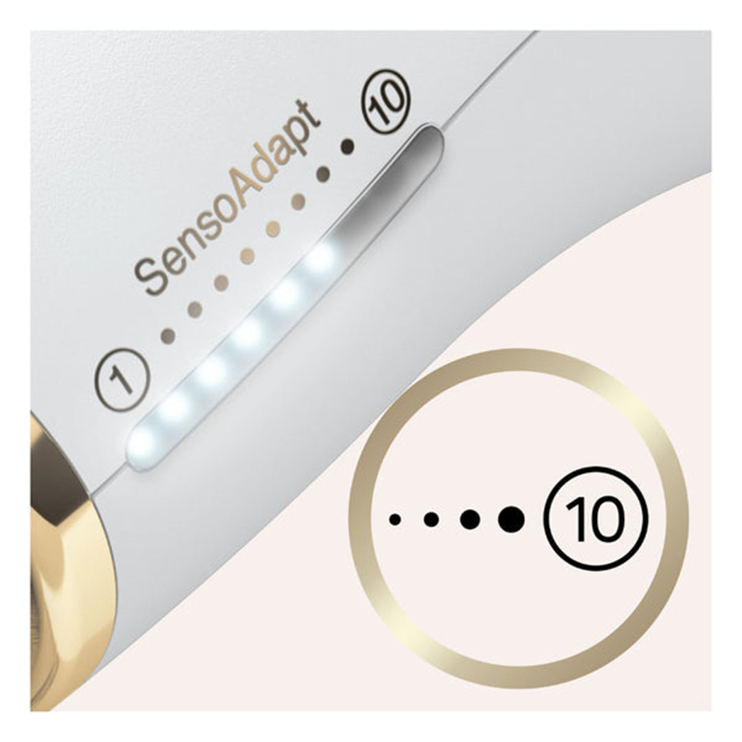 - مجهز بتقنية SkinPro 2.0 التي تقوم بضبط مستوى شدة النبضات الضوئية أتوماتيكيا