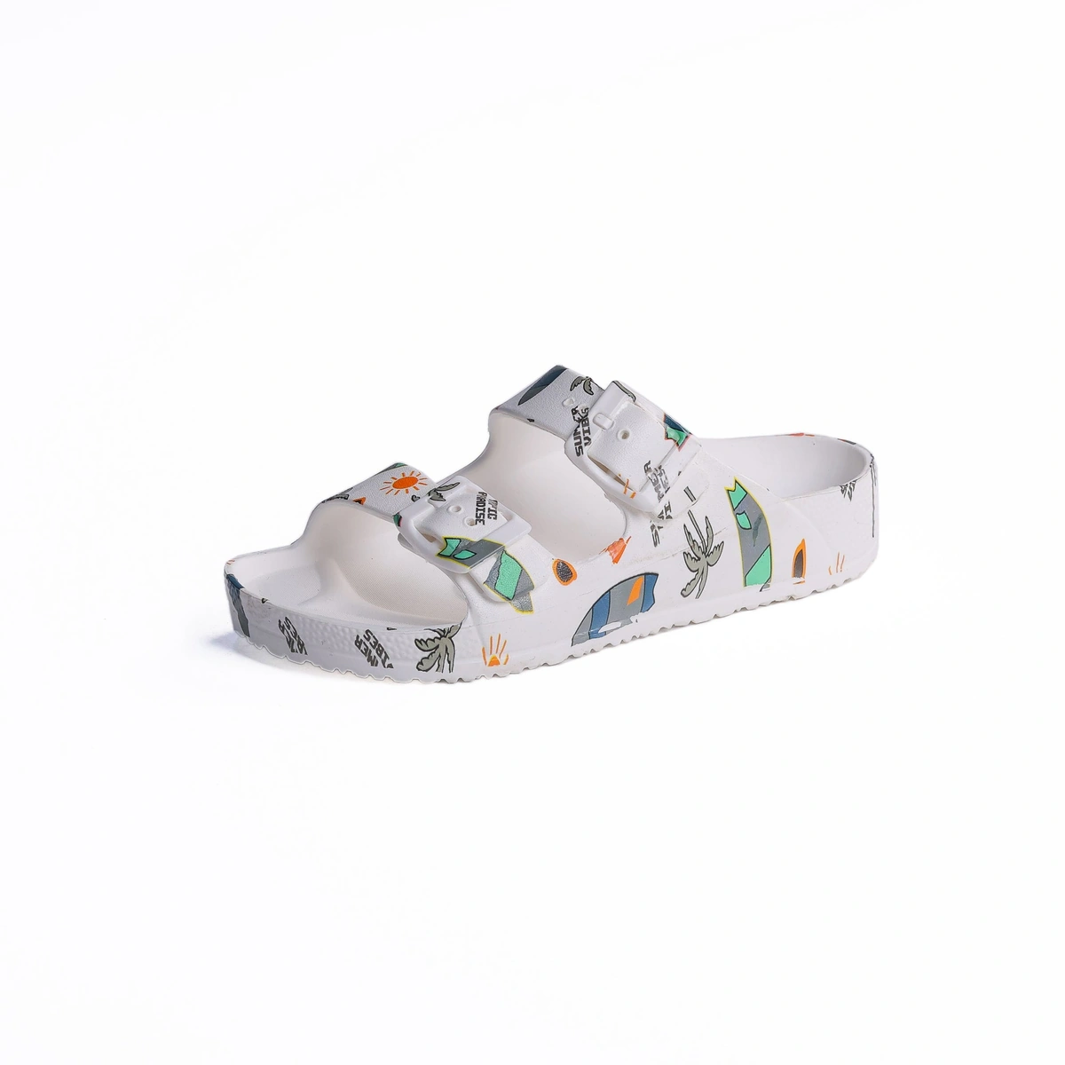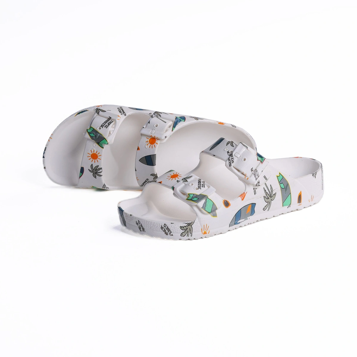 استمتع بأفضل لحظات الصيف مع شبشب سلايد للأطفال، المصنوع من فوم EVA الخفيف والمقاوم للماء، مما يجعله الخيار المثالي للعب على الشاطئ أو بجانب المسبح. يأتي هذا الشبشب بتصميم بطبعات صيفية ملونة تضفي لمسة من المرح على إطلالة طفلك، بالإضافة إلى حزامين علويين يضمنان تثبيته بشكل مريح وآمن. كما يتميز بنعل خارجي مانع للانزلاق، مما يوفر حماية إضافية أثناء الحركة. اجعل صيف طفلك مليئًا بالراحة والأناقة مع هذا الشبشب الرائع!
